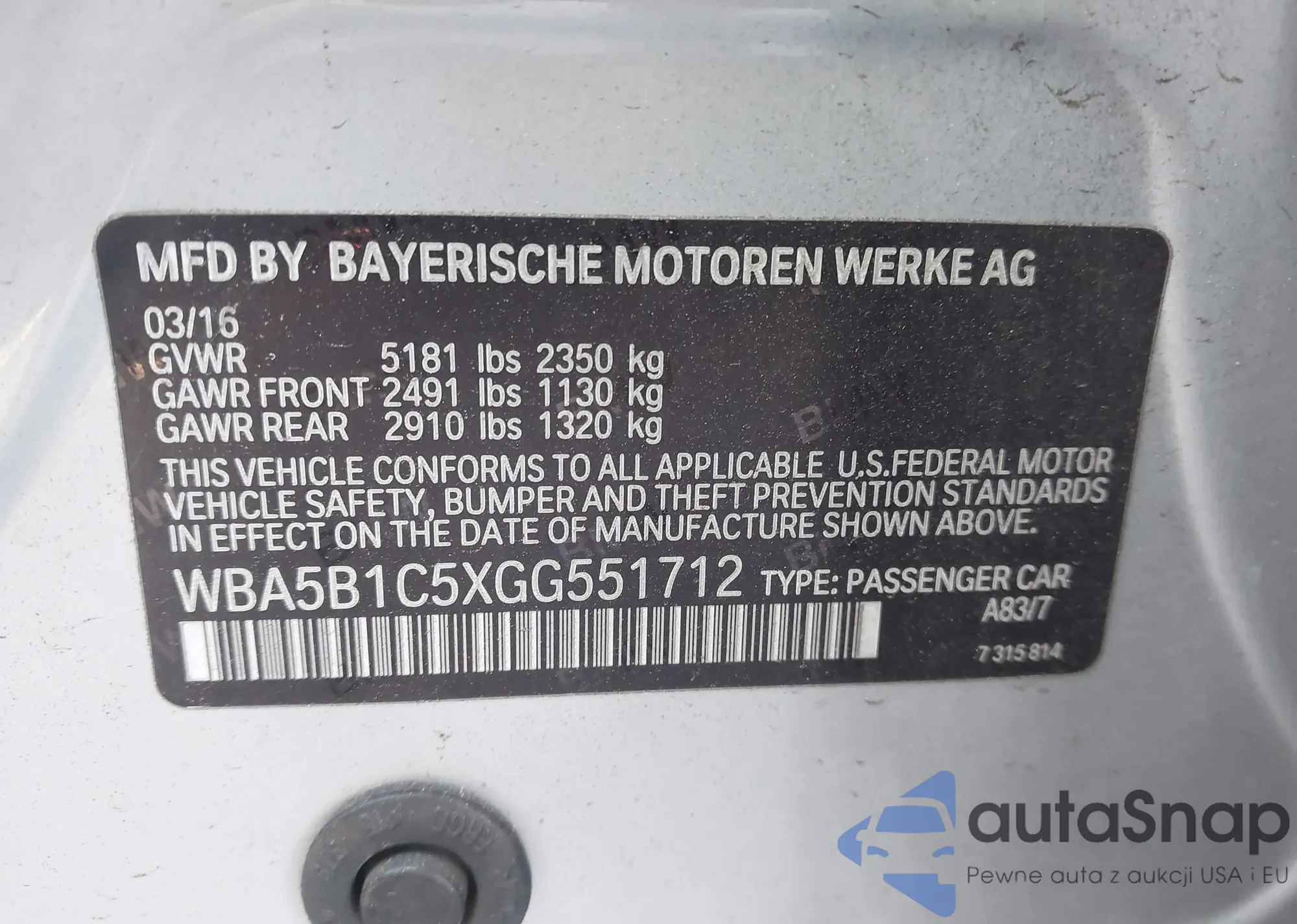 LOT: 43479052 VIN: WBAJR3C07LWW63507