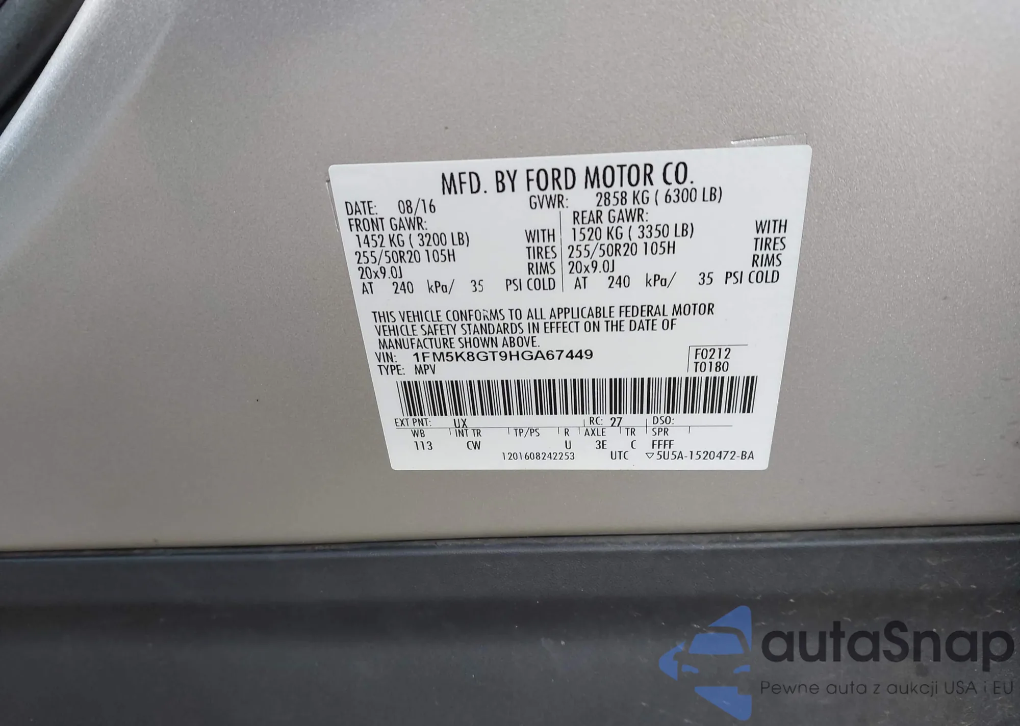 • VIN 1FM5K8GT9HGA67449