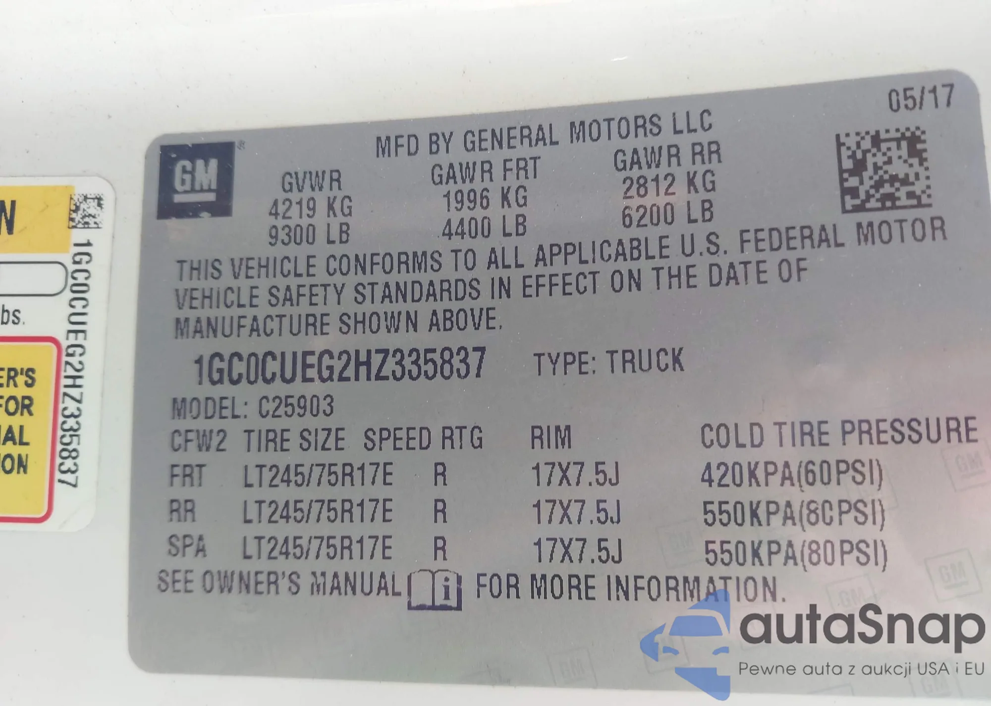 • VIN 1GC0CUEG2HZ335837