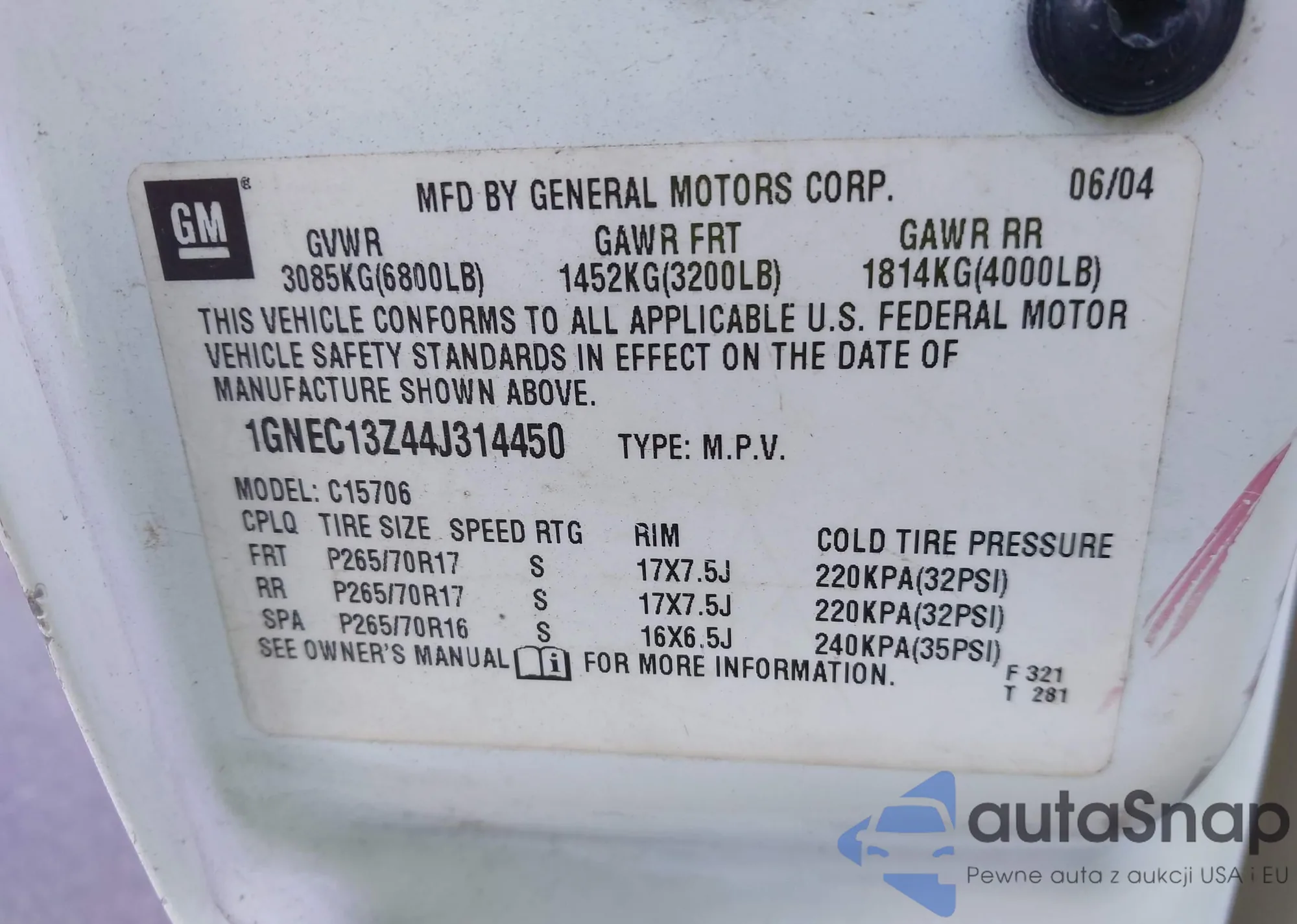 LOT: 43803915 VIN: YV4952CY4B1575752