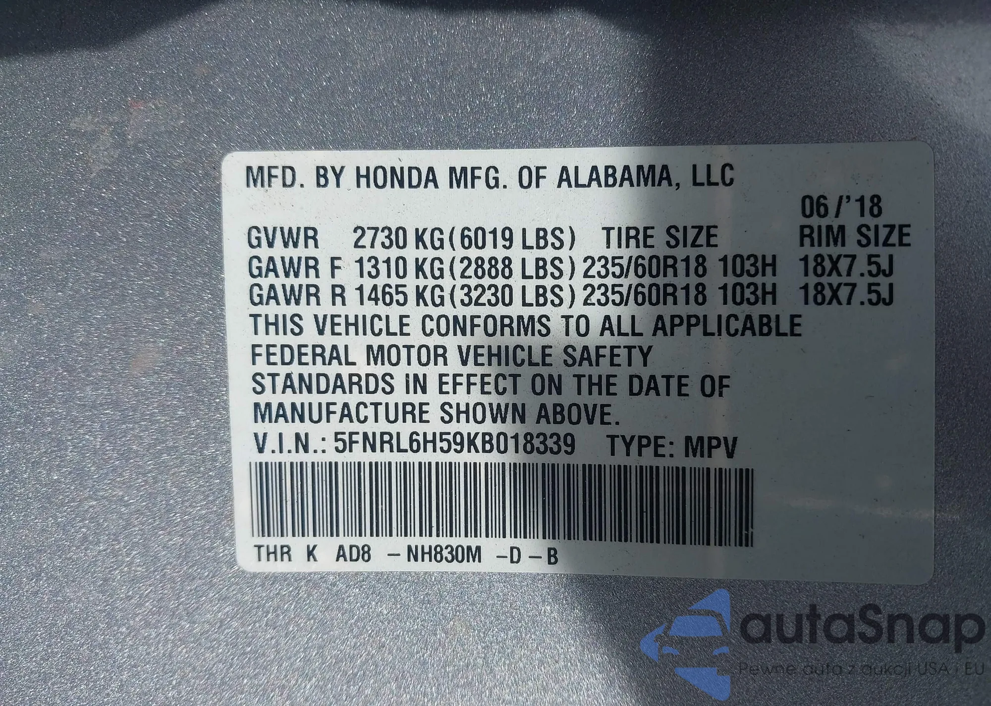 LOT: 43595909 VIN: 2HGFE4F86SH309262
