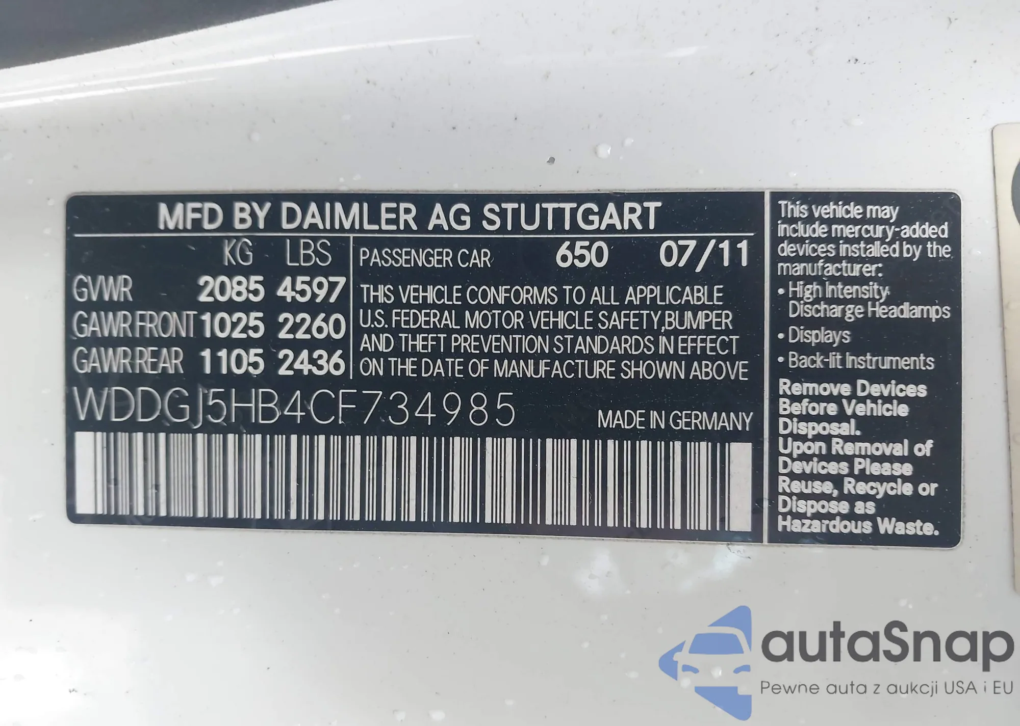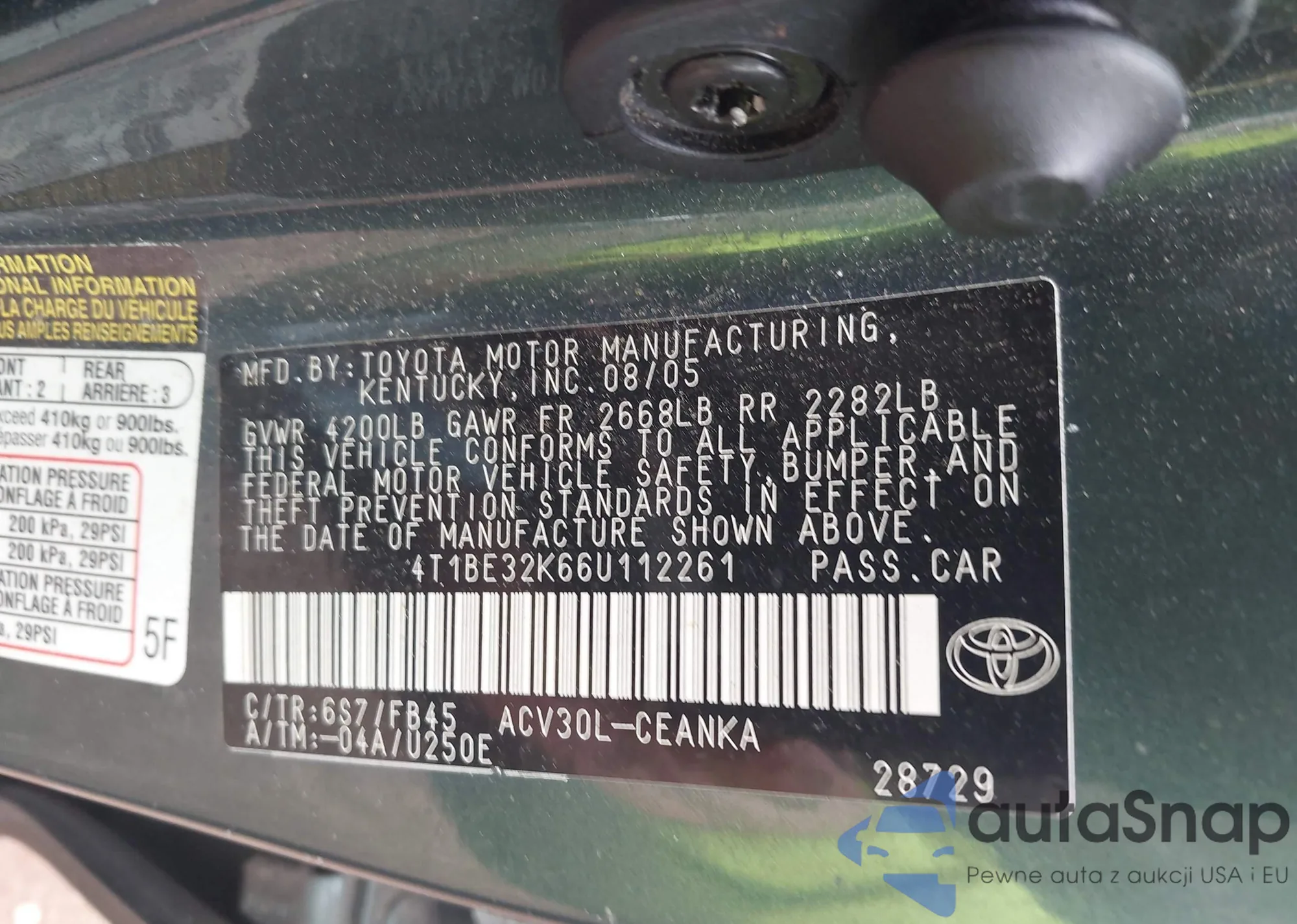 • VIN WAUDACF56MA017742