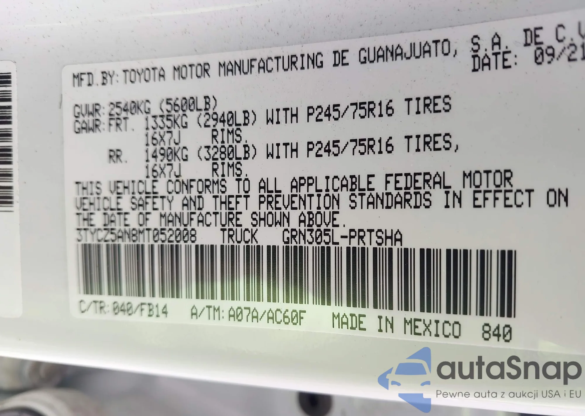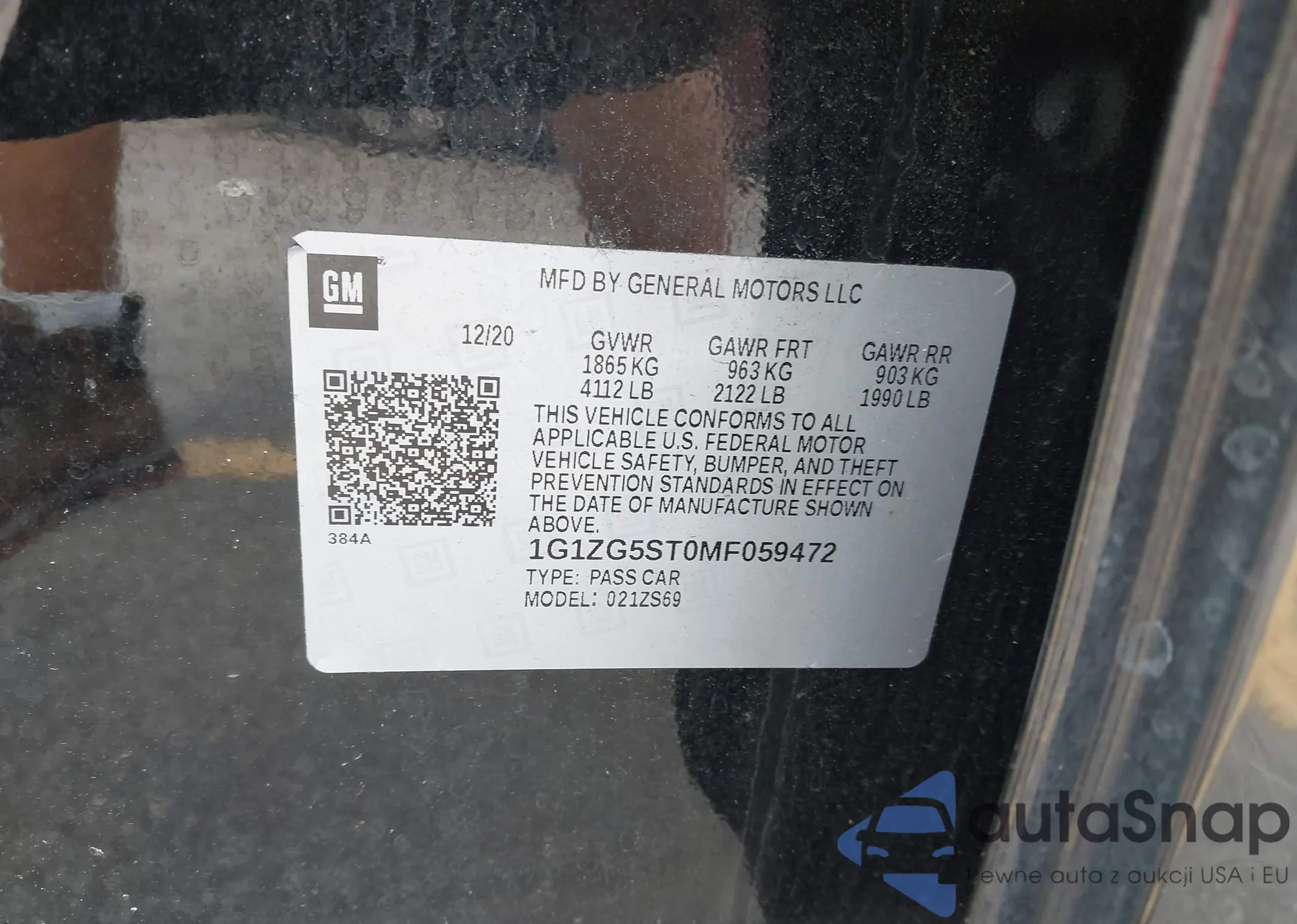 • VIN 1G1ZG5ST0MF059472