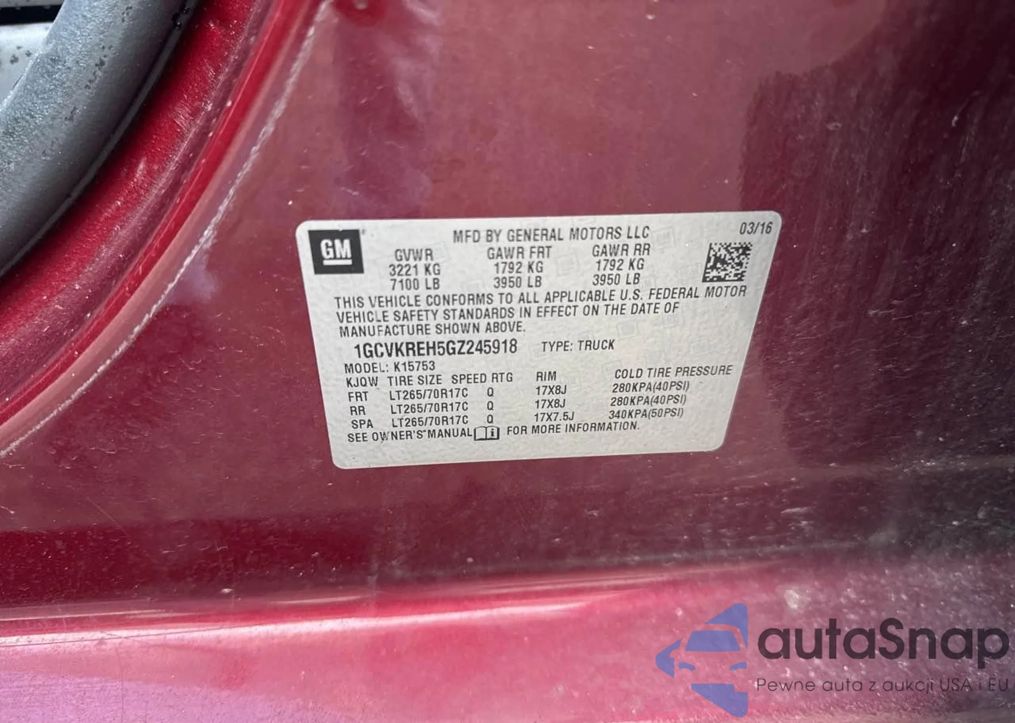 • VIN 1GCVKREH5GZ245918