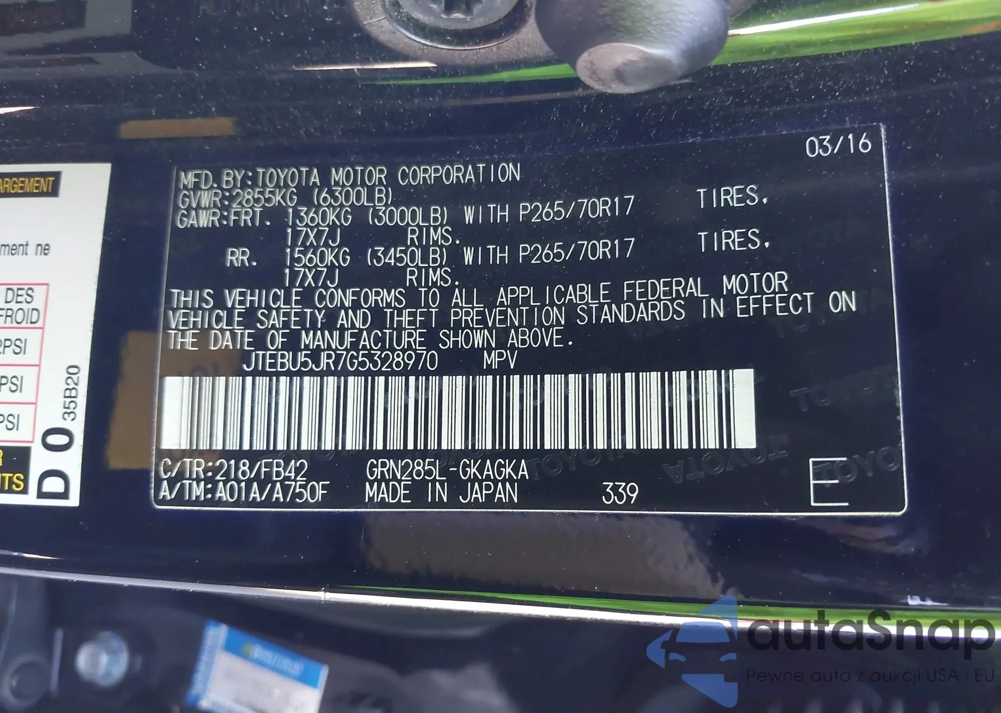 LOT: 43551911 VIN: JTEBU5JR7G5328970