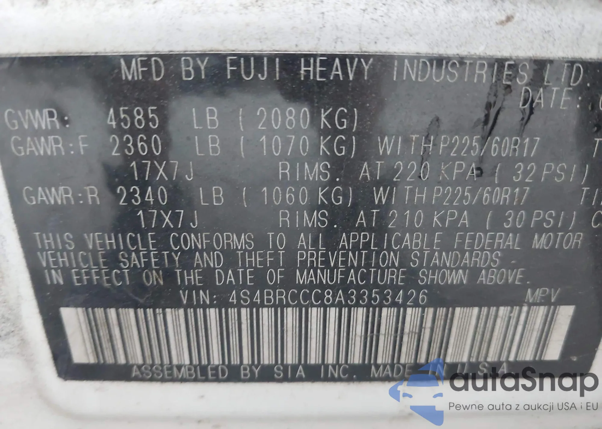 • VIN 4S4BRCCC8A3353426