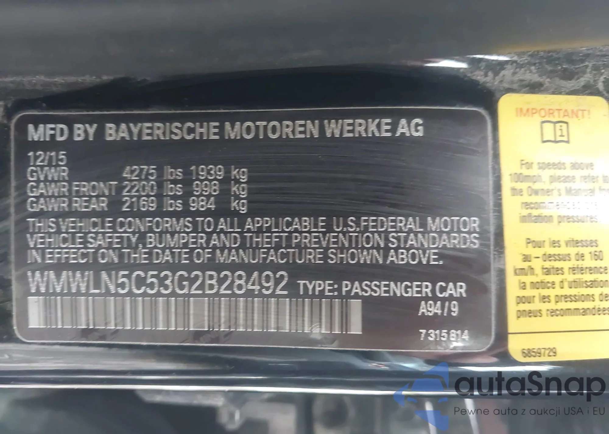 LOT: 43639128 VIN: WBA3B5C56EP652208