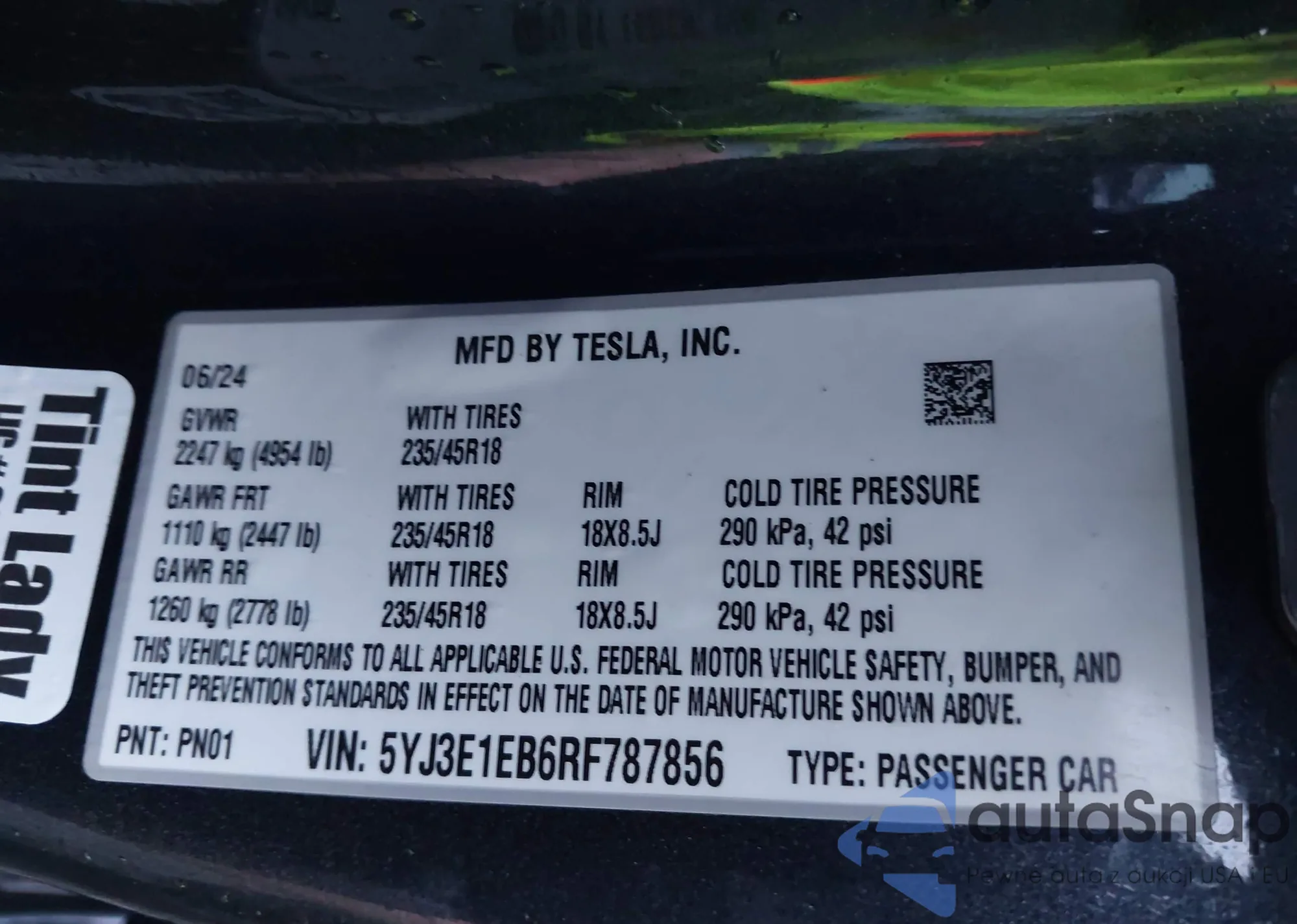 • VIN 5YJ3E1EB6RF787856