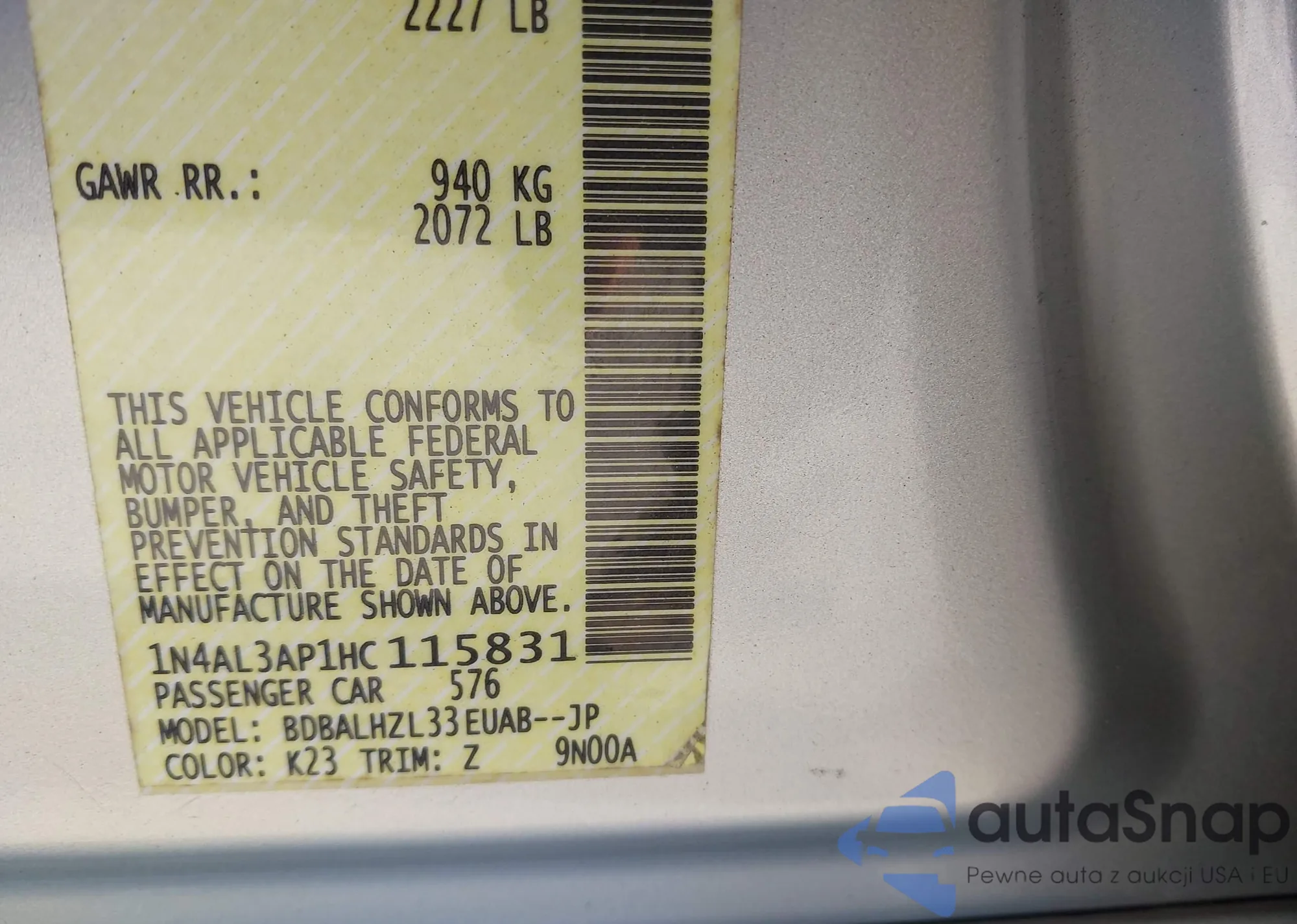 LOT: 43745433 VIN: 1N4AL3AP1HC115831