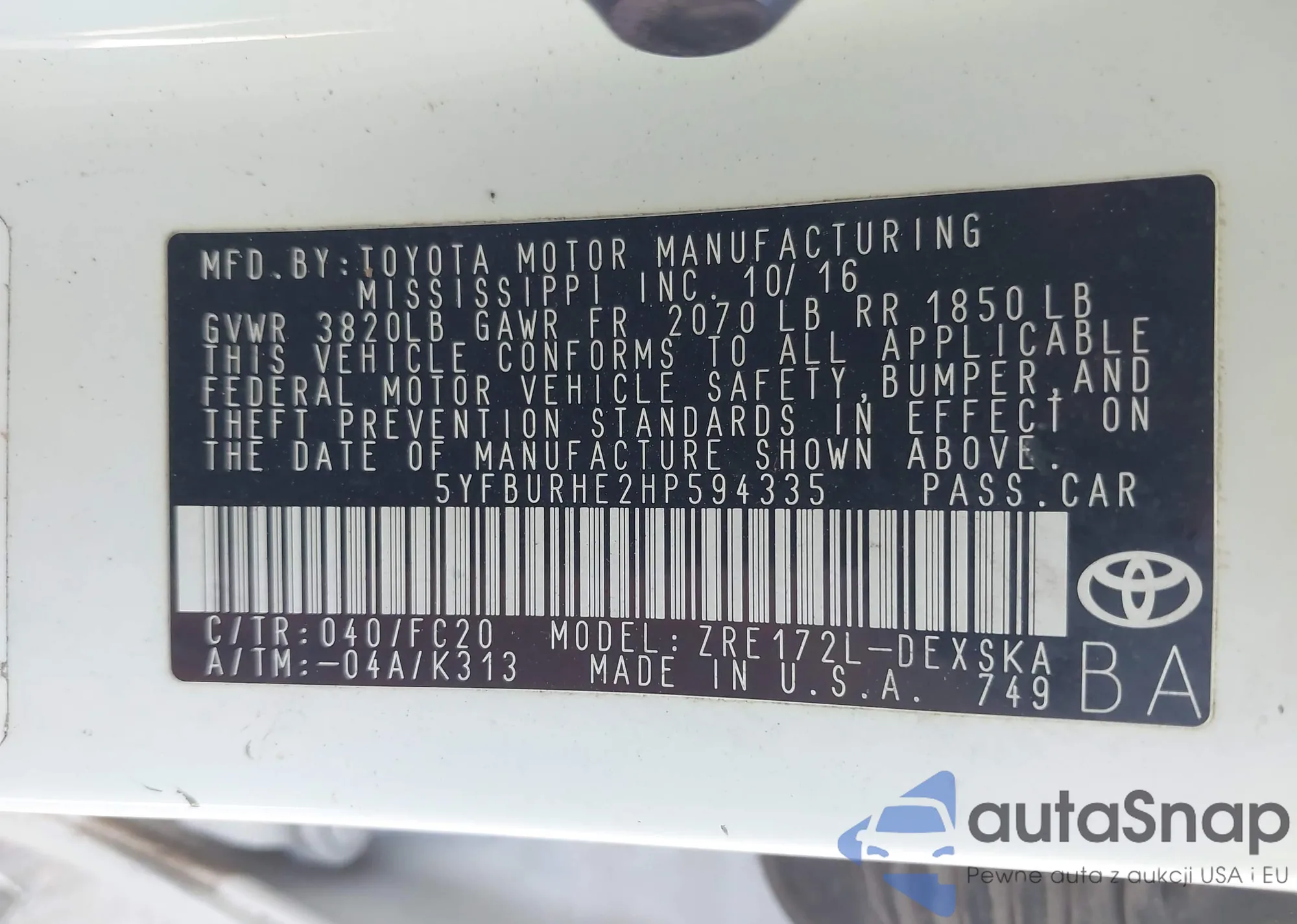 • VIN 5YFBURHE2HP594335