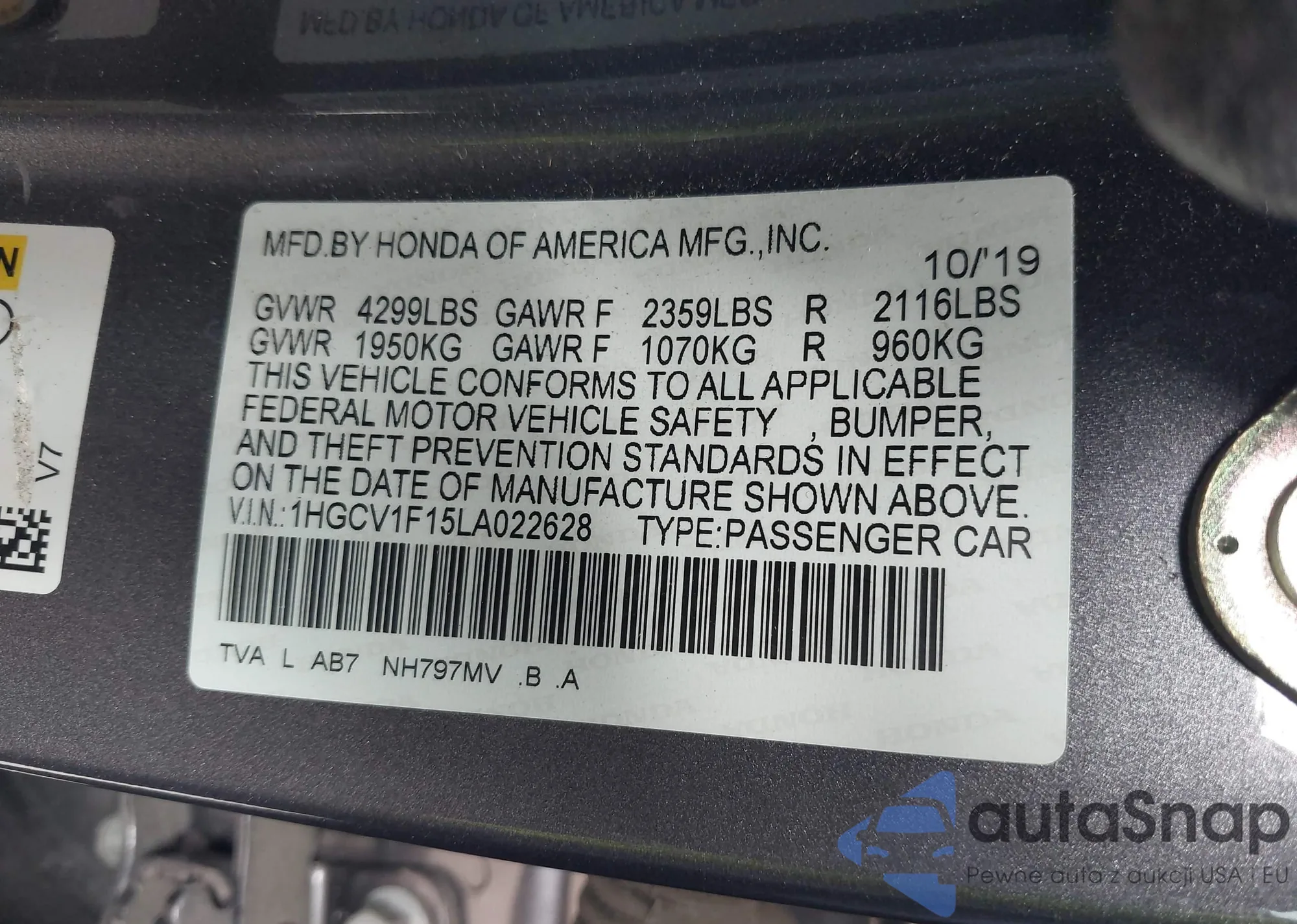 • VIN 1HGCV1F15LA022628