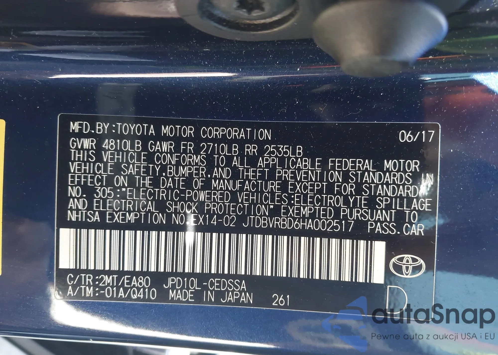 • VIN 4T1DAACKXSU072512