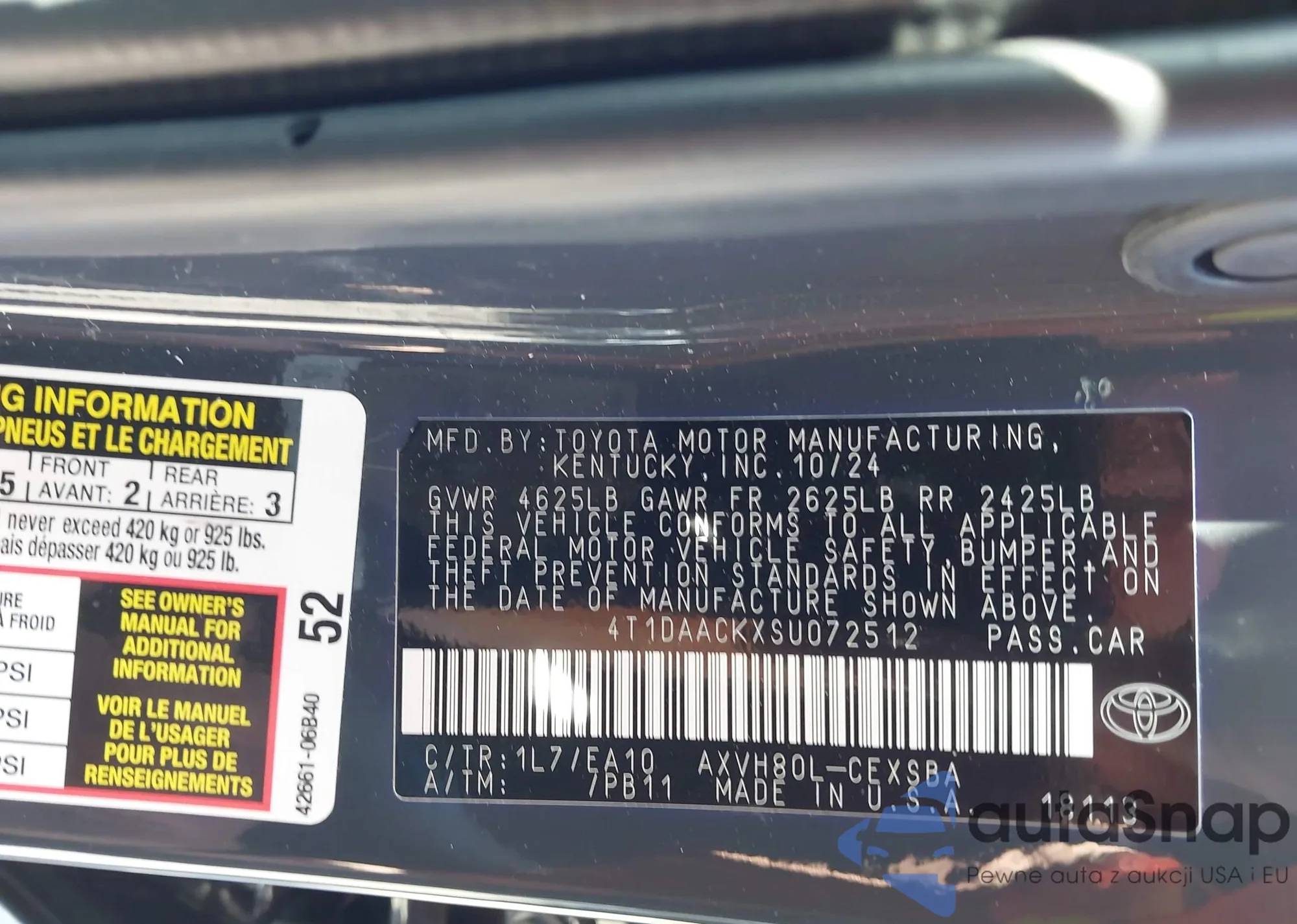 LOT: 43541607 VIN: 4T1DAACKXSU072512