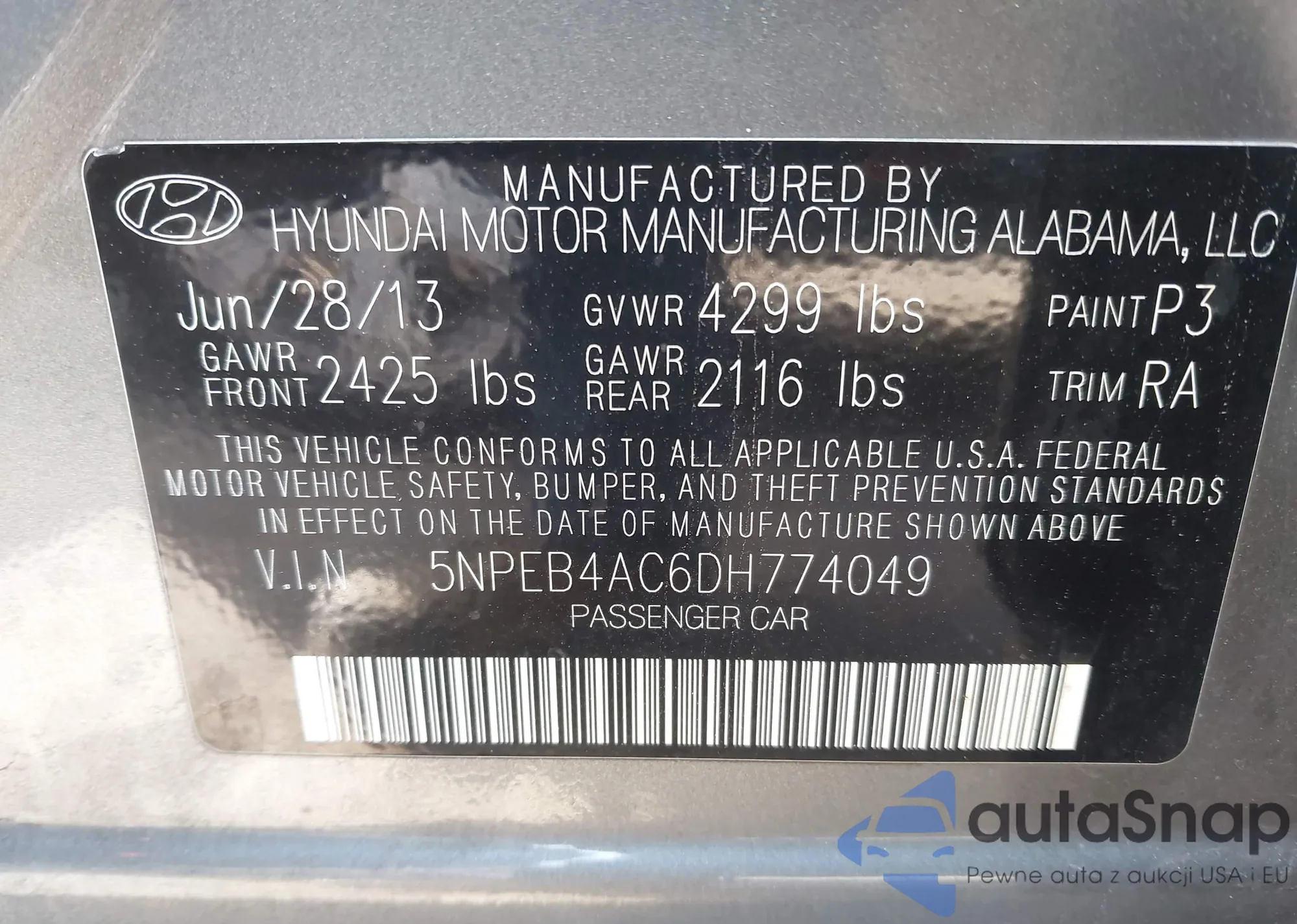 LOT: 43530765 VIN: 2HKRM4H99DH115601