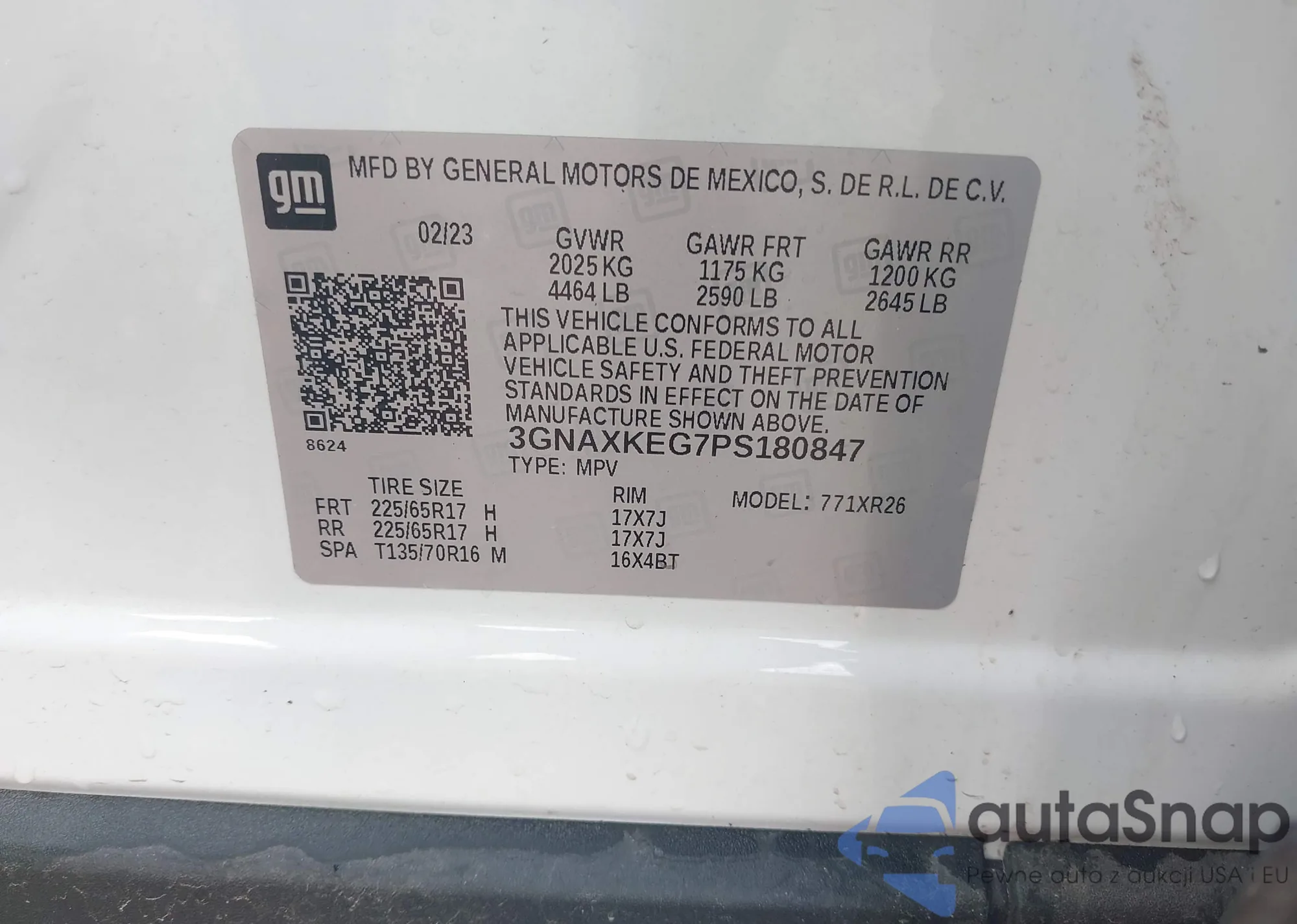 LOT: 40219000 VIN: 3GNAXKEG7PS180847