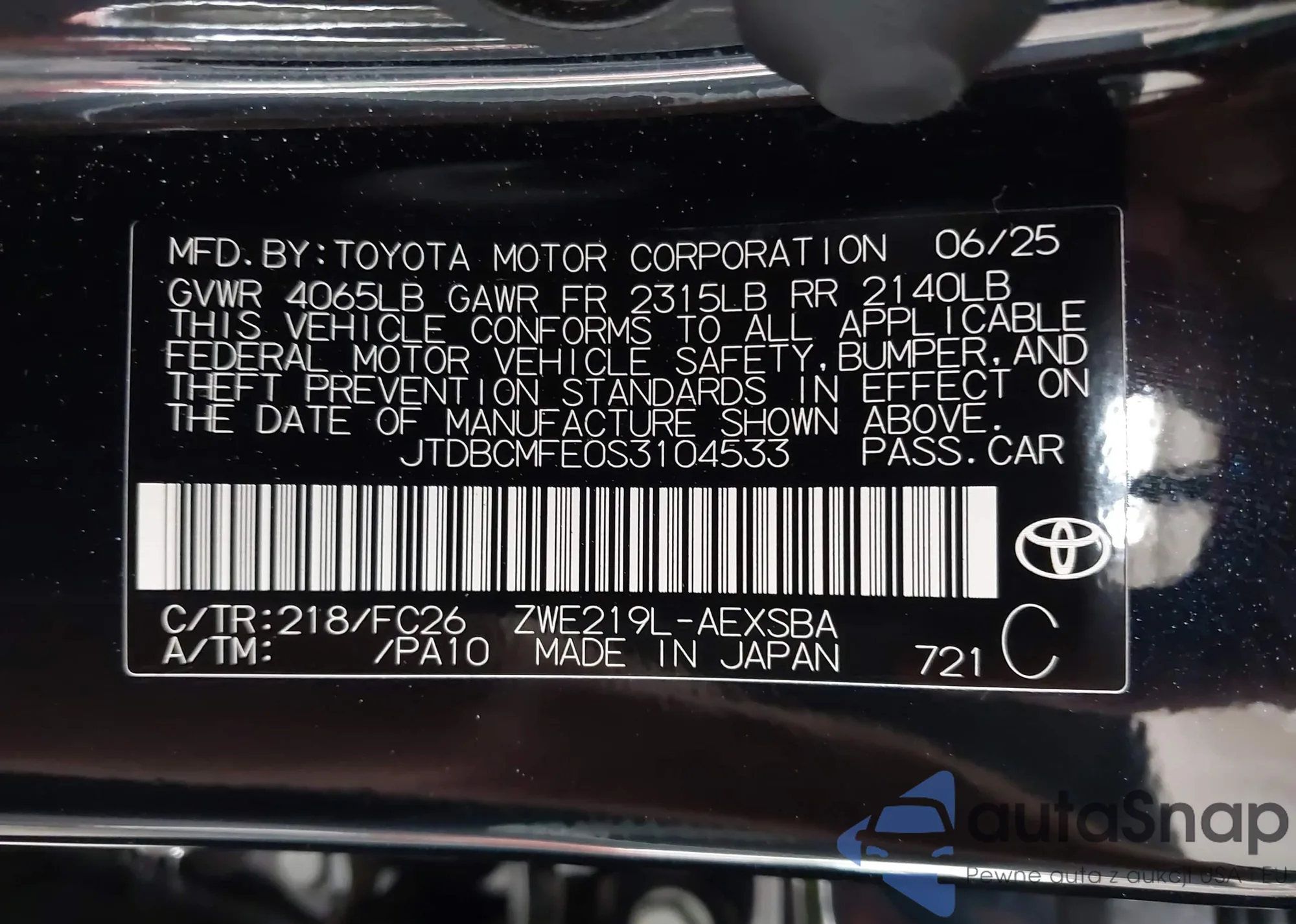 • VIN JTDBCMFE0S3104533
