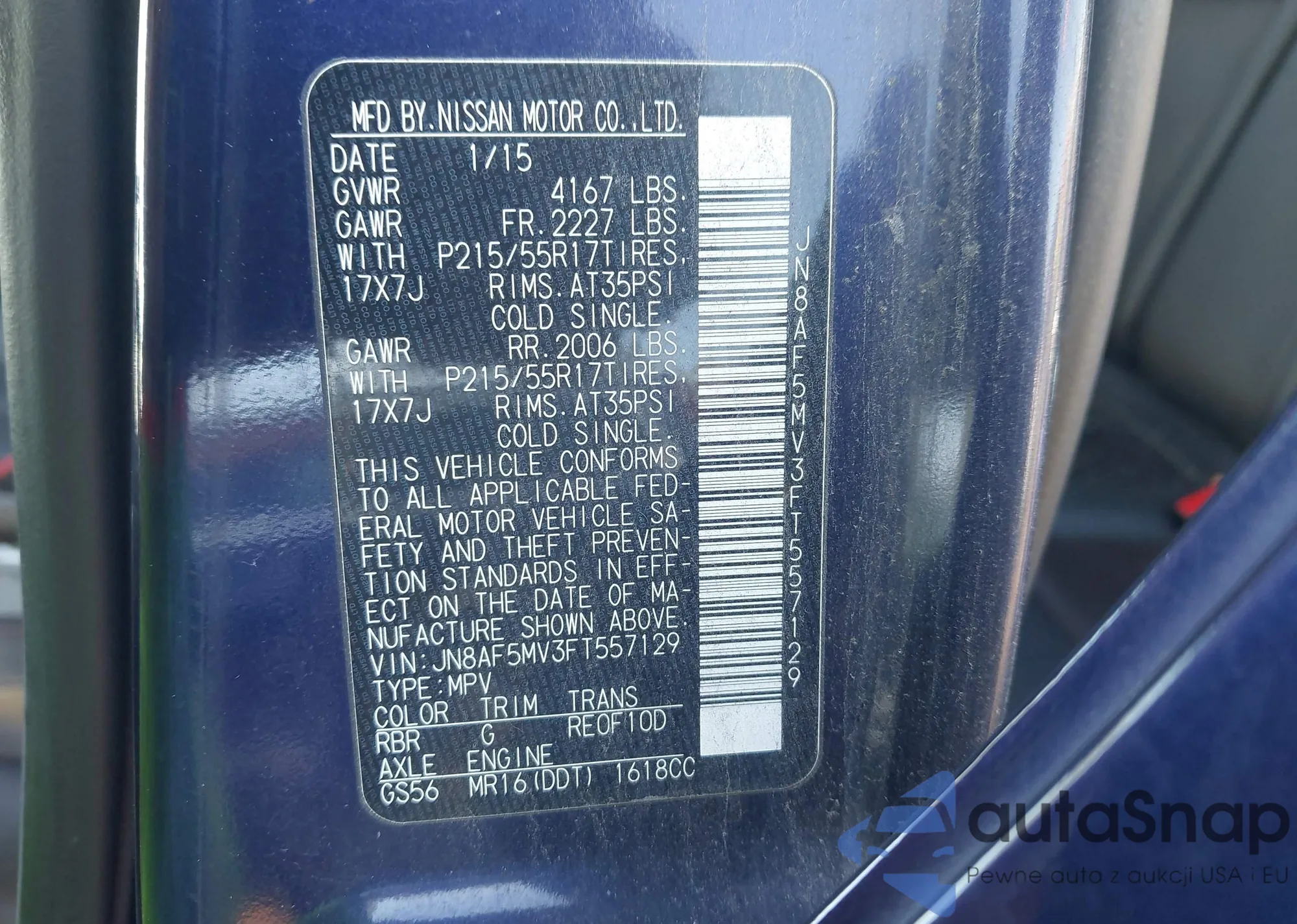 LOT: 39216398 VIN: 5N1AR2MN2EC698379