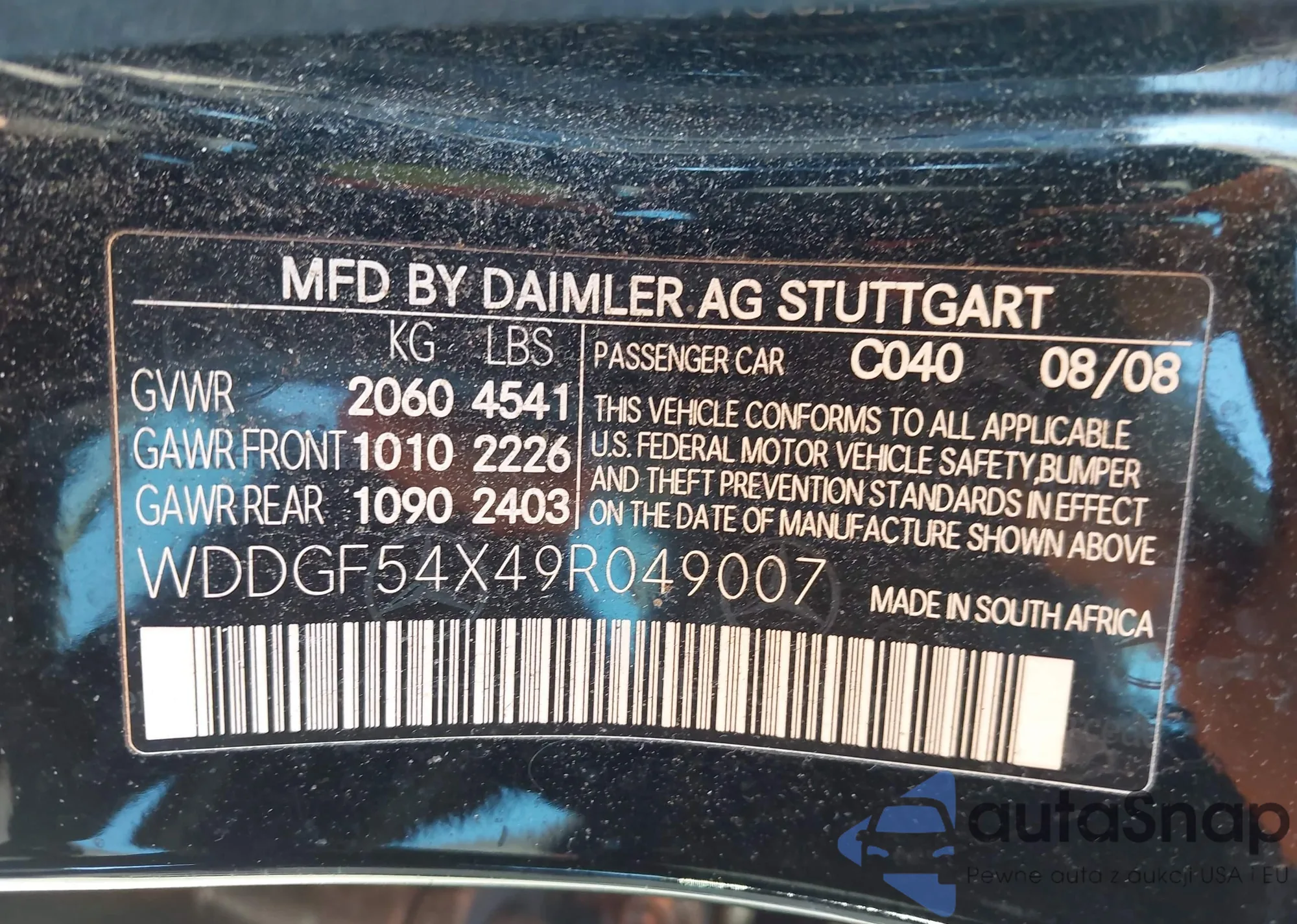 LOT: 43611781 VIN: WDDGF54X49R049007
