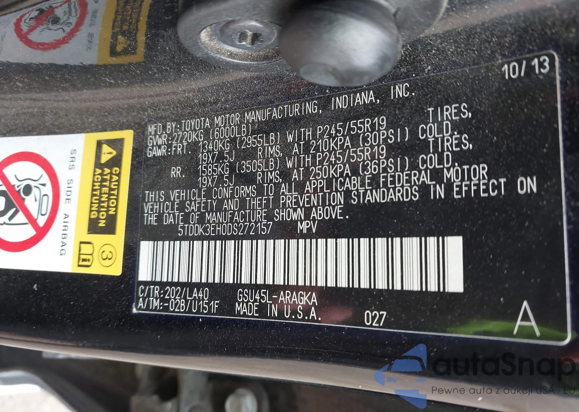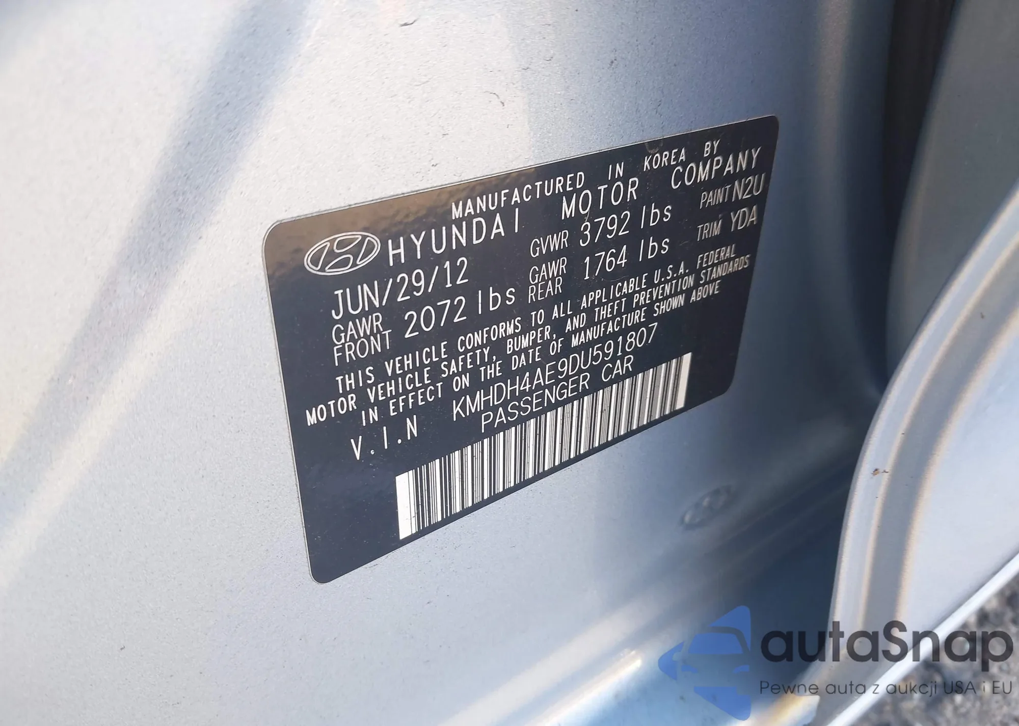 LOT: 43181234 VIN: KMHDH4AE9DU591807