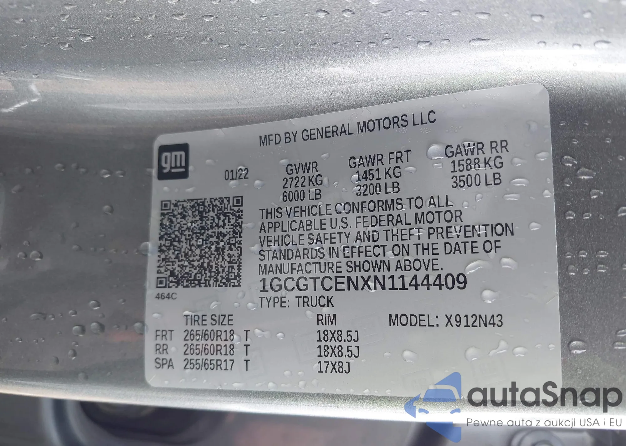 LOT: 43251729 VIN: 1HGCV1F38NA124249