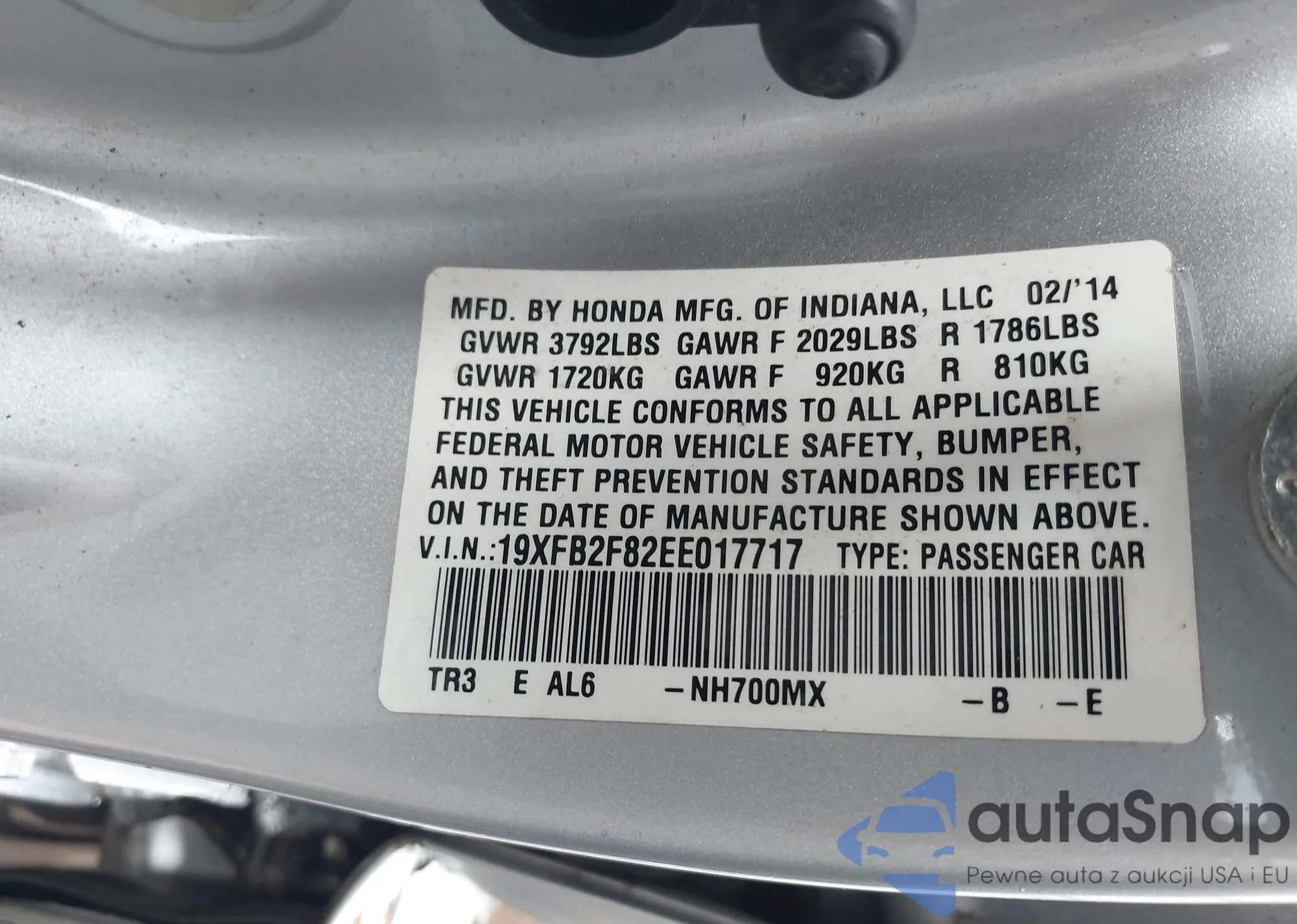 • VIN 19XFB2F82EE017717