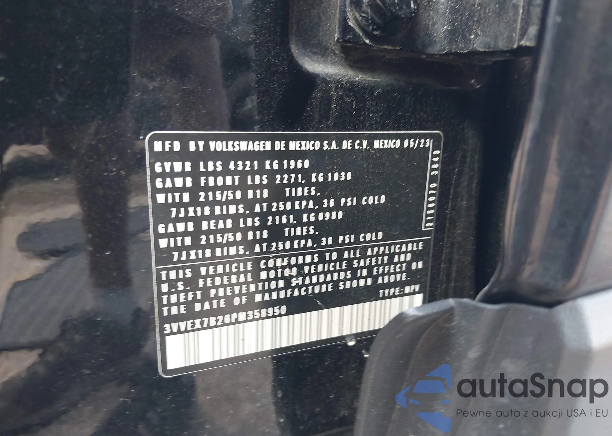 LOT: 43135466 VIN: 3VVEX7B26PM358950