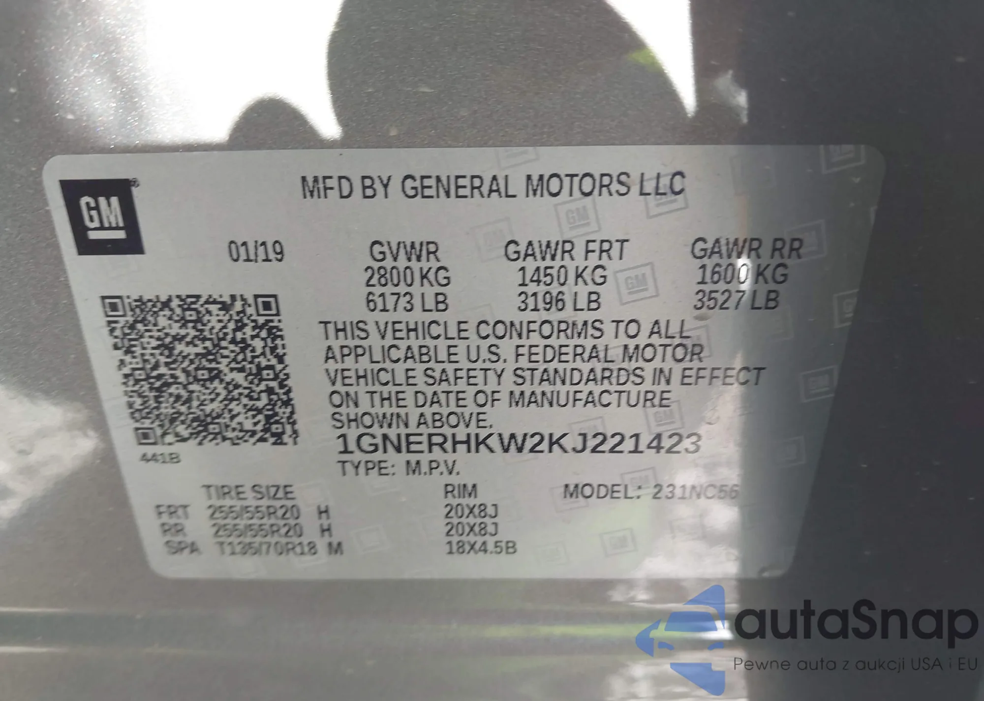 LOT: 43257040 VIN: 1GNERHKW2KJ221423
