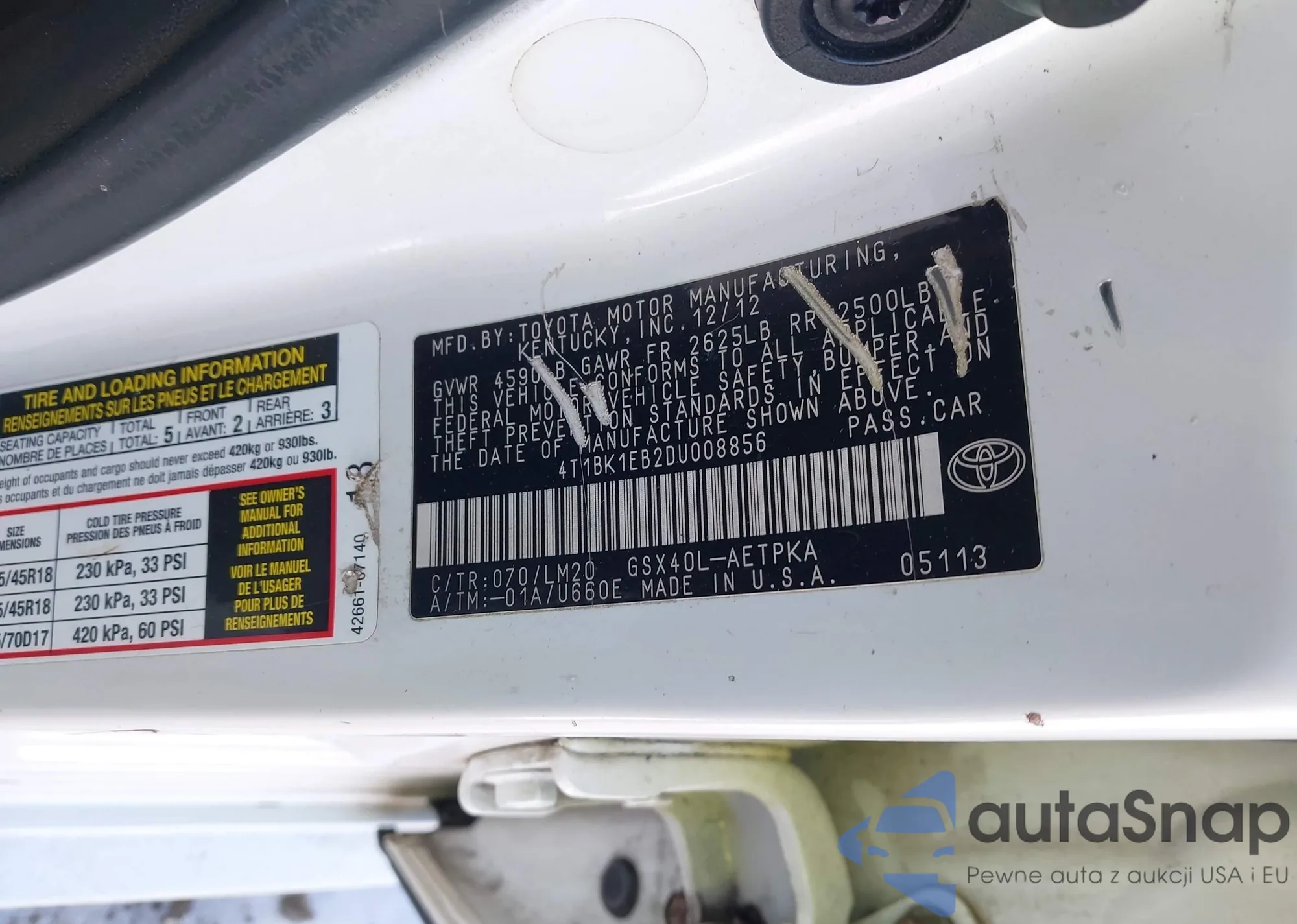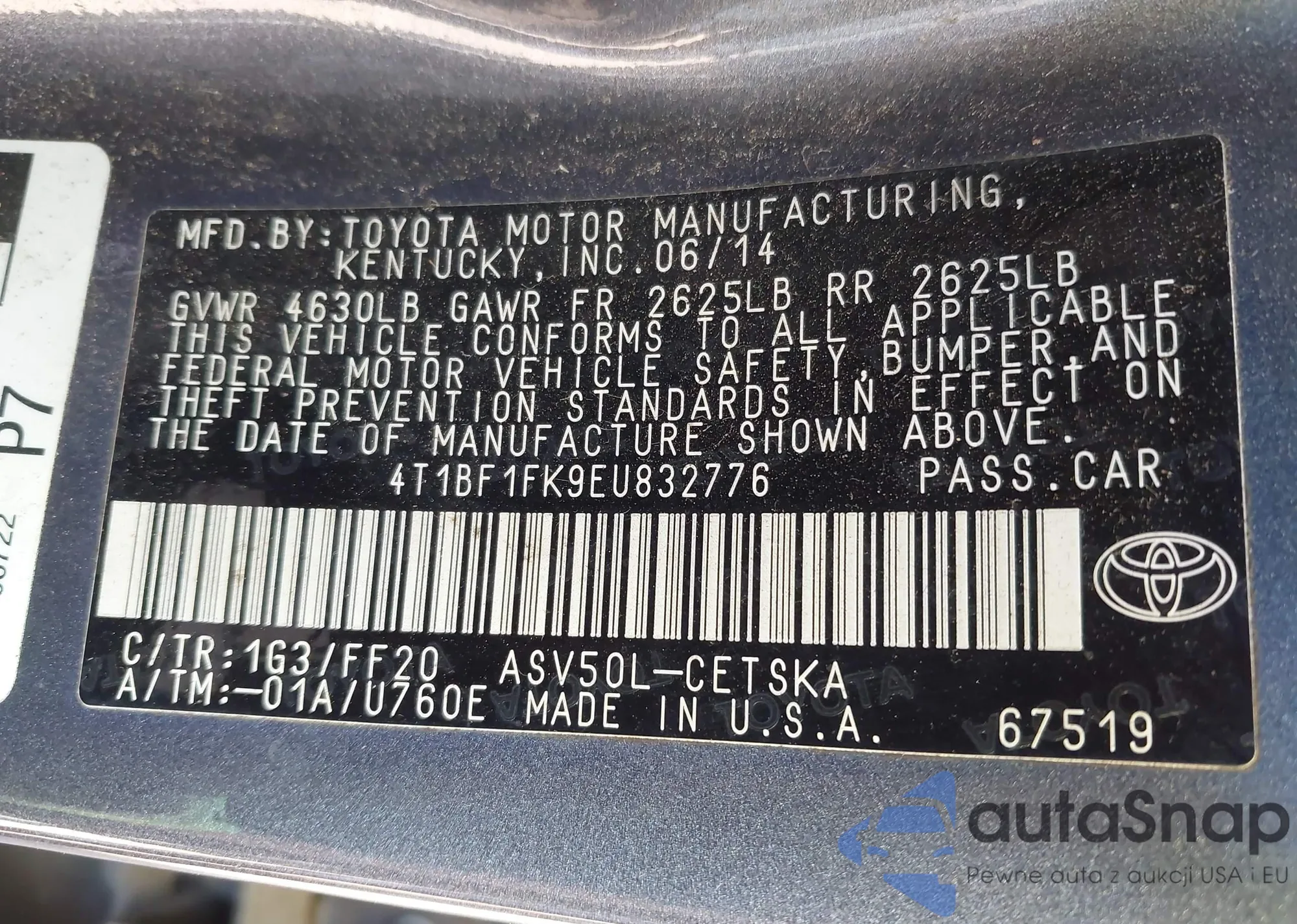 • VIN 4T1BF1FK9EU832776