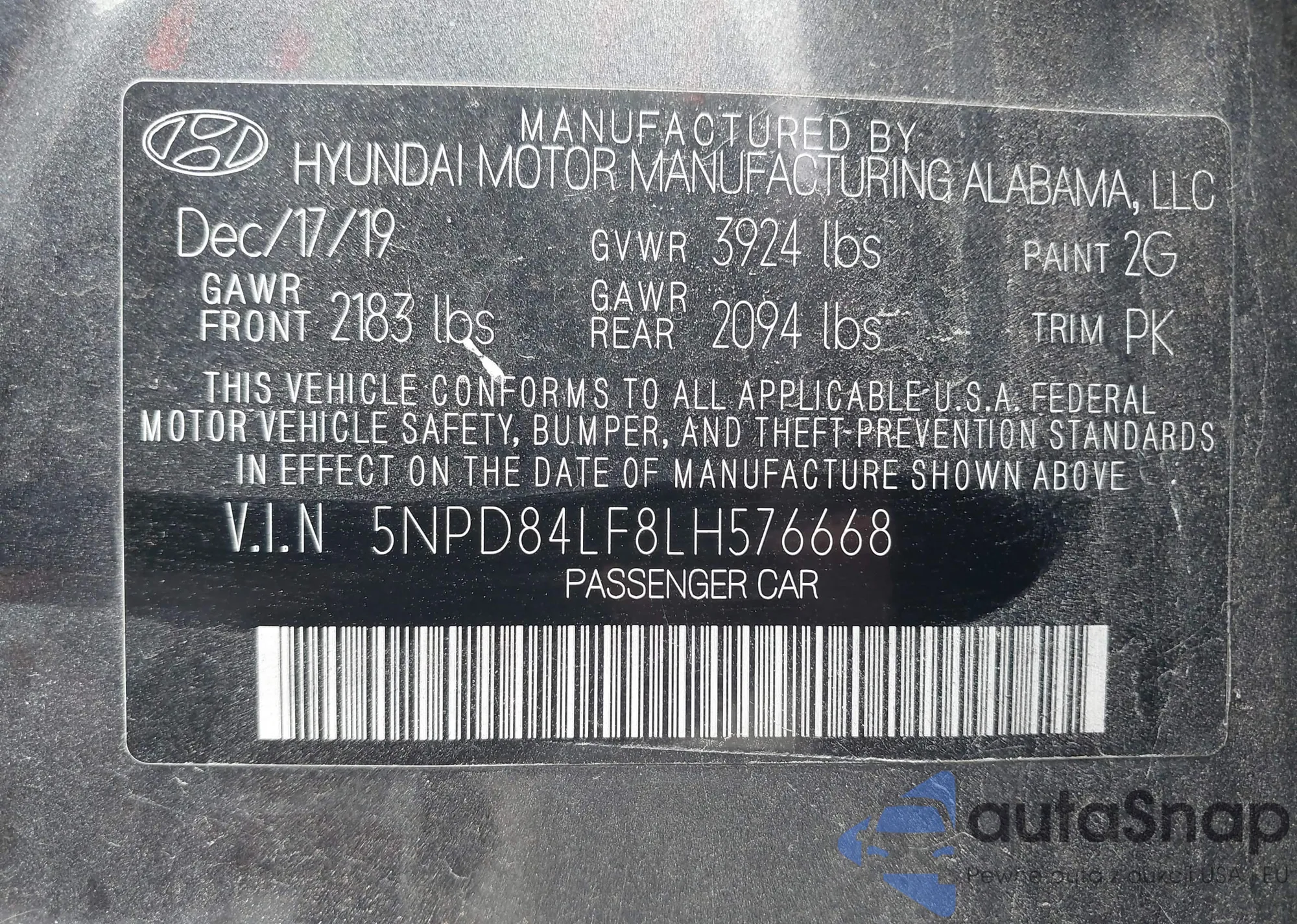 • VIN 5NPEB4AC9CH481650