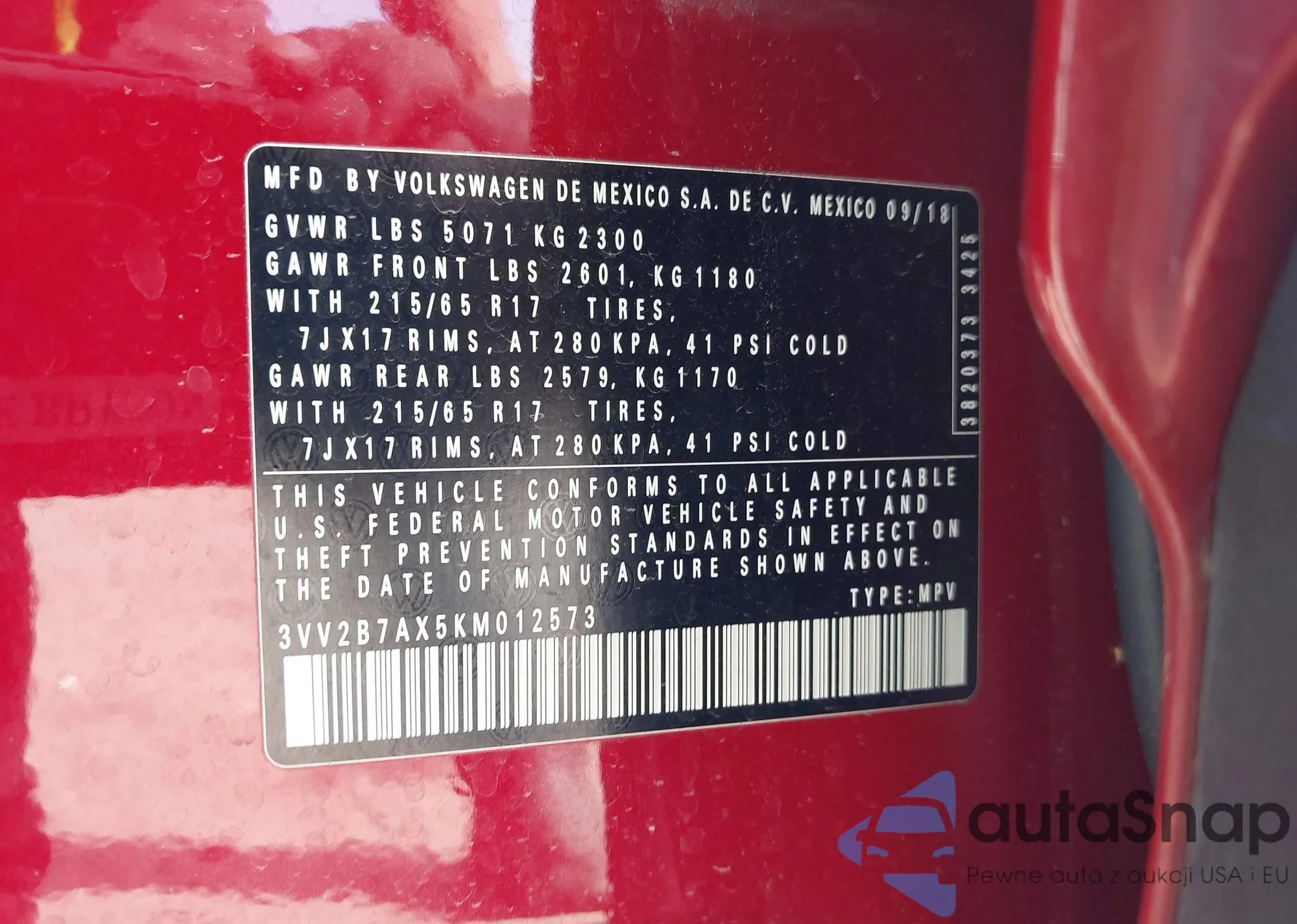 • VIN 3VV2B7AX5KM012573