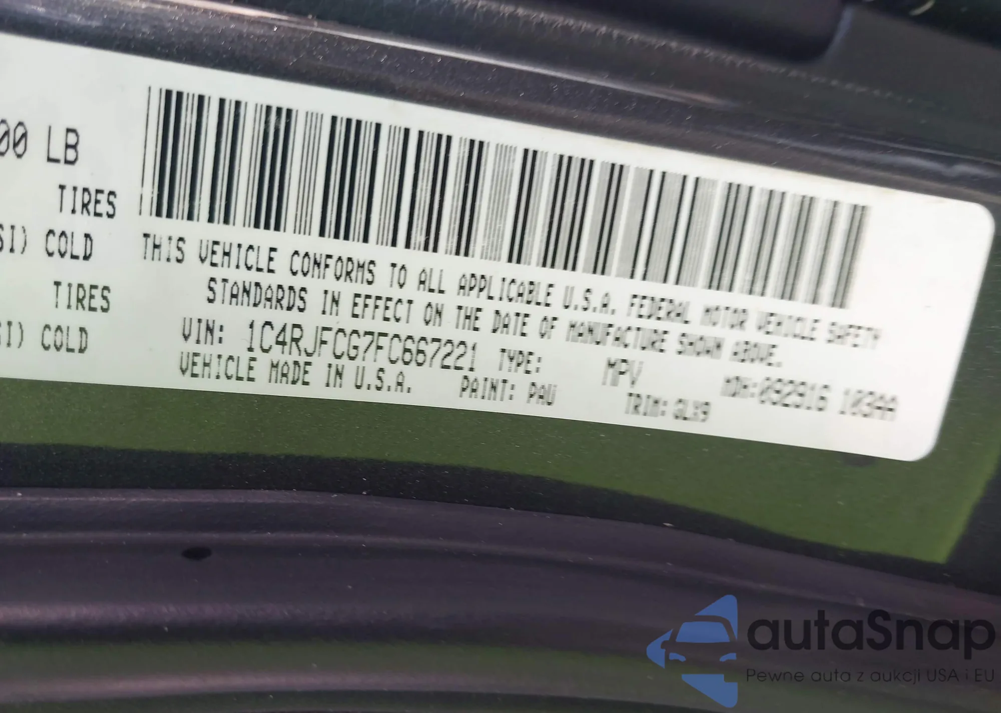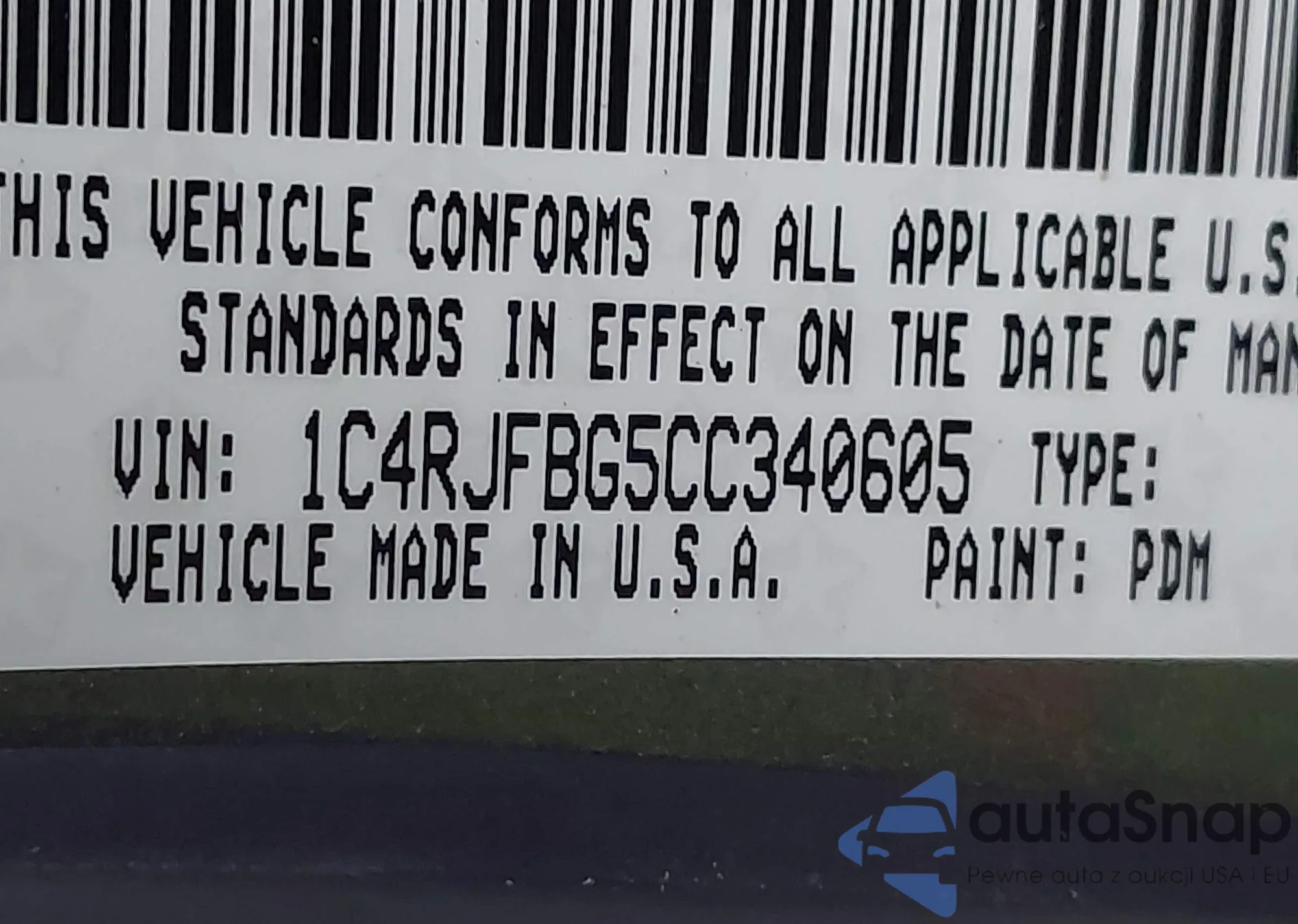• VIN 1C4RJFBG5CC340605