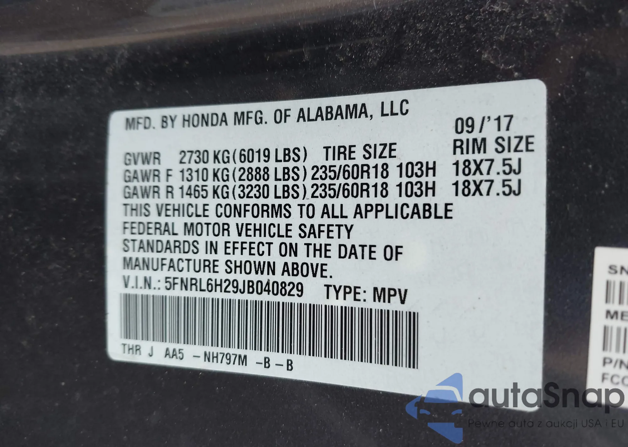 LOT: 41992887 VIN: 2HGFG1B69AH532374