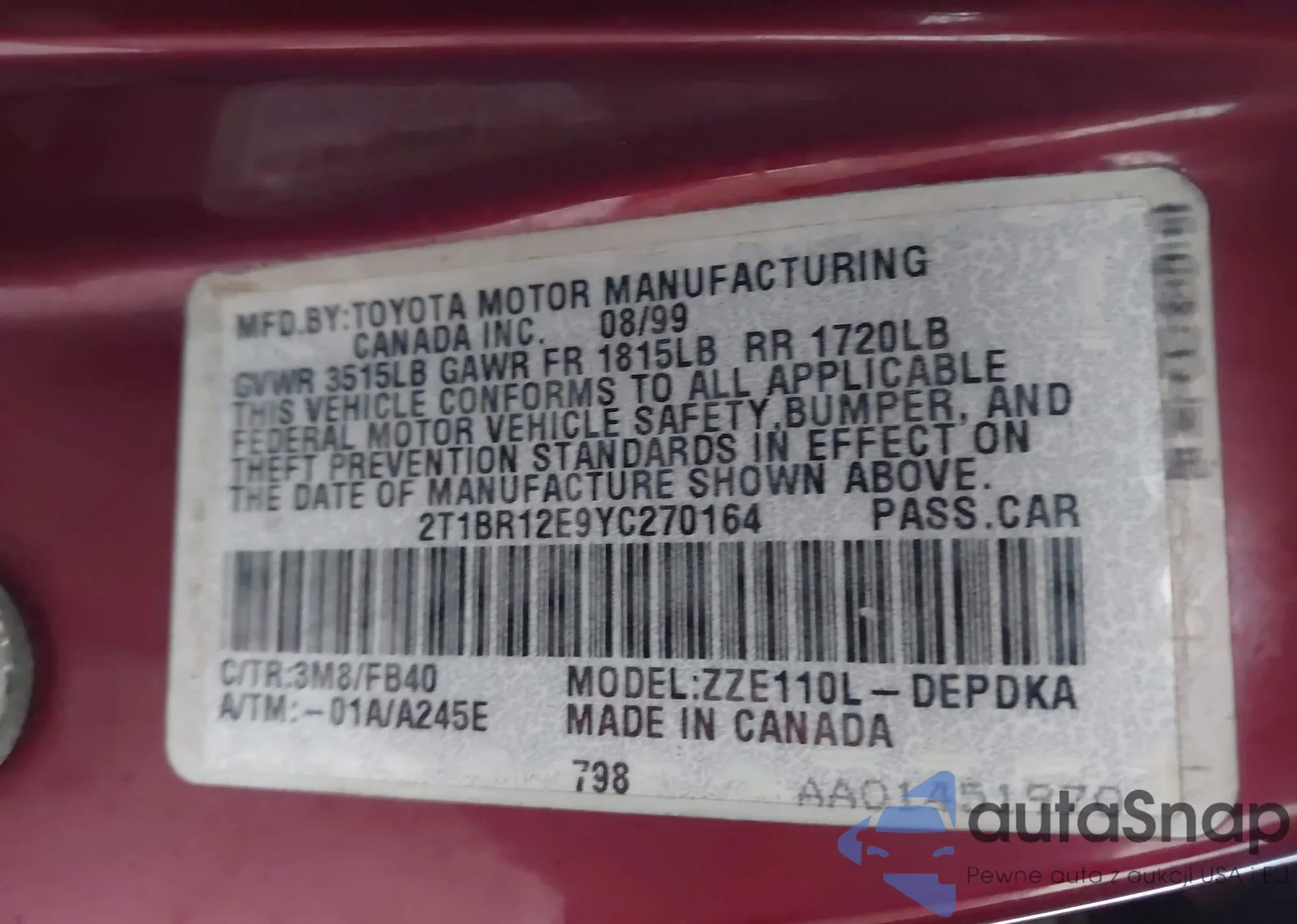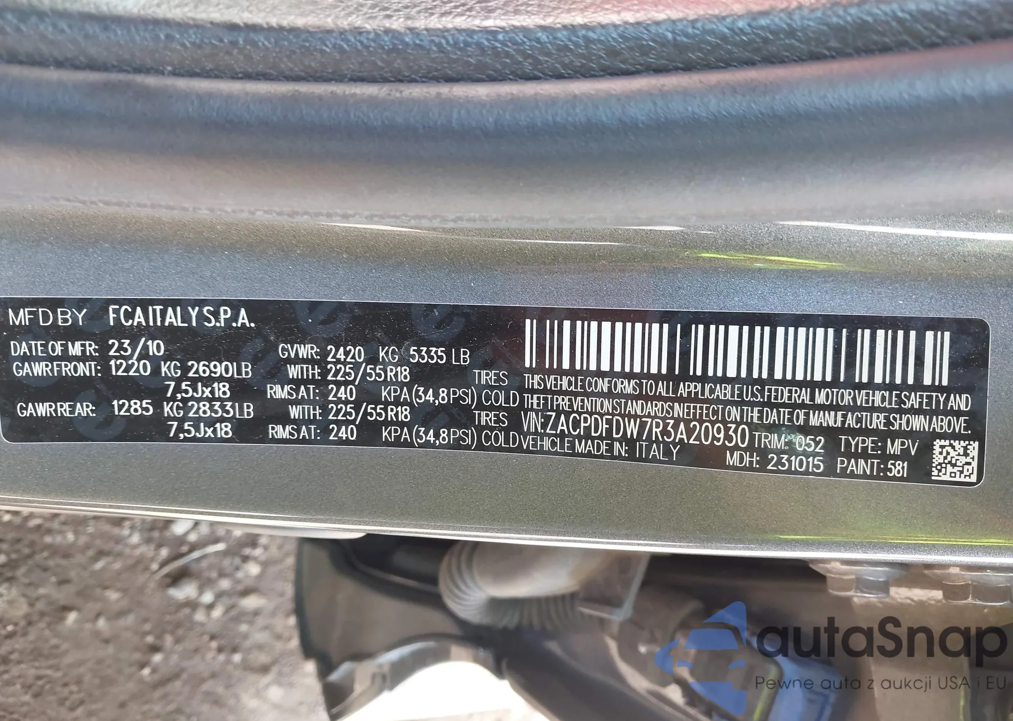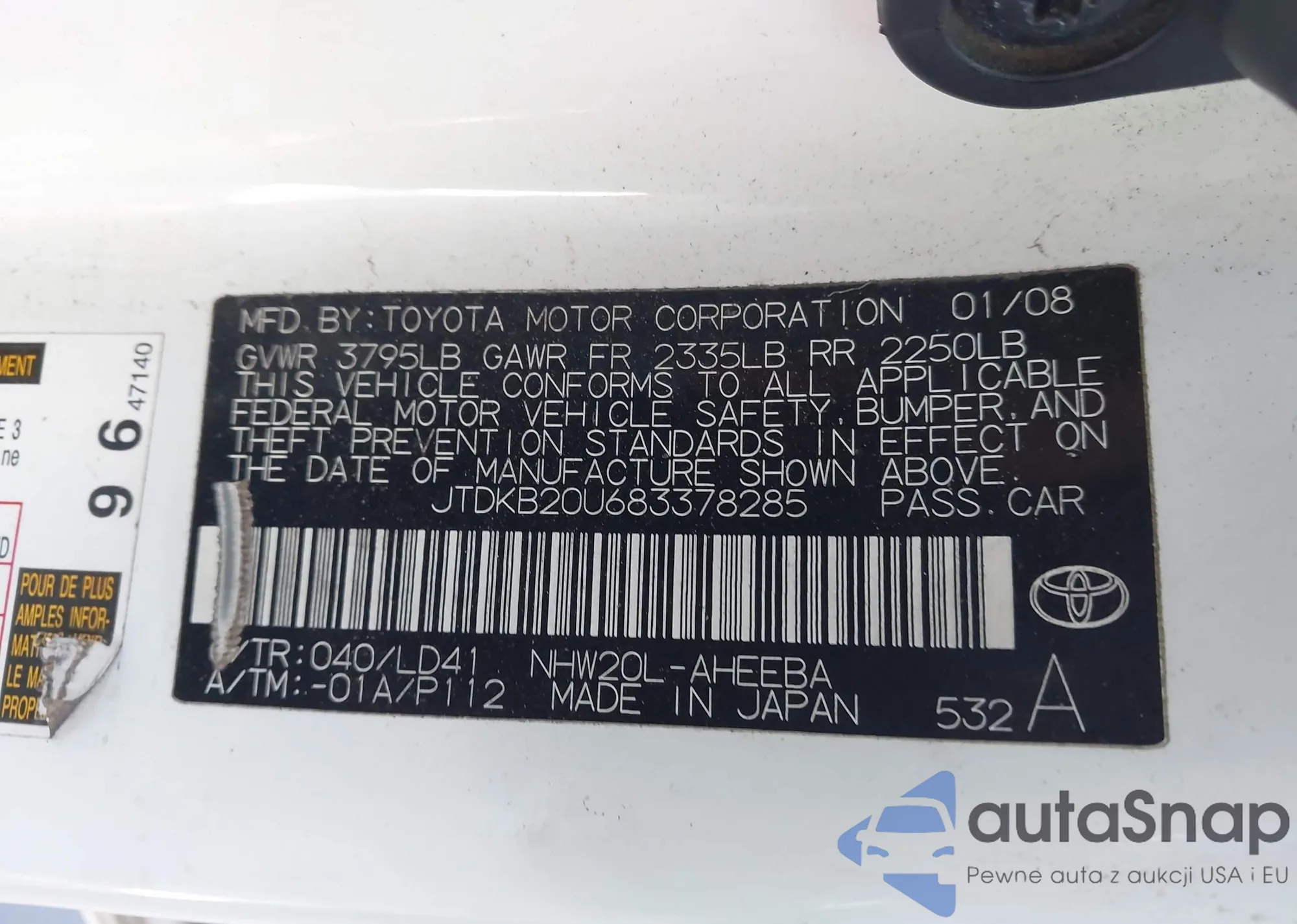 • VIN 3FADP4EJXDM118880