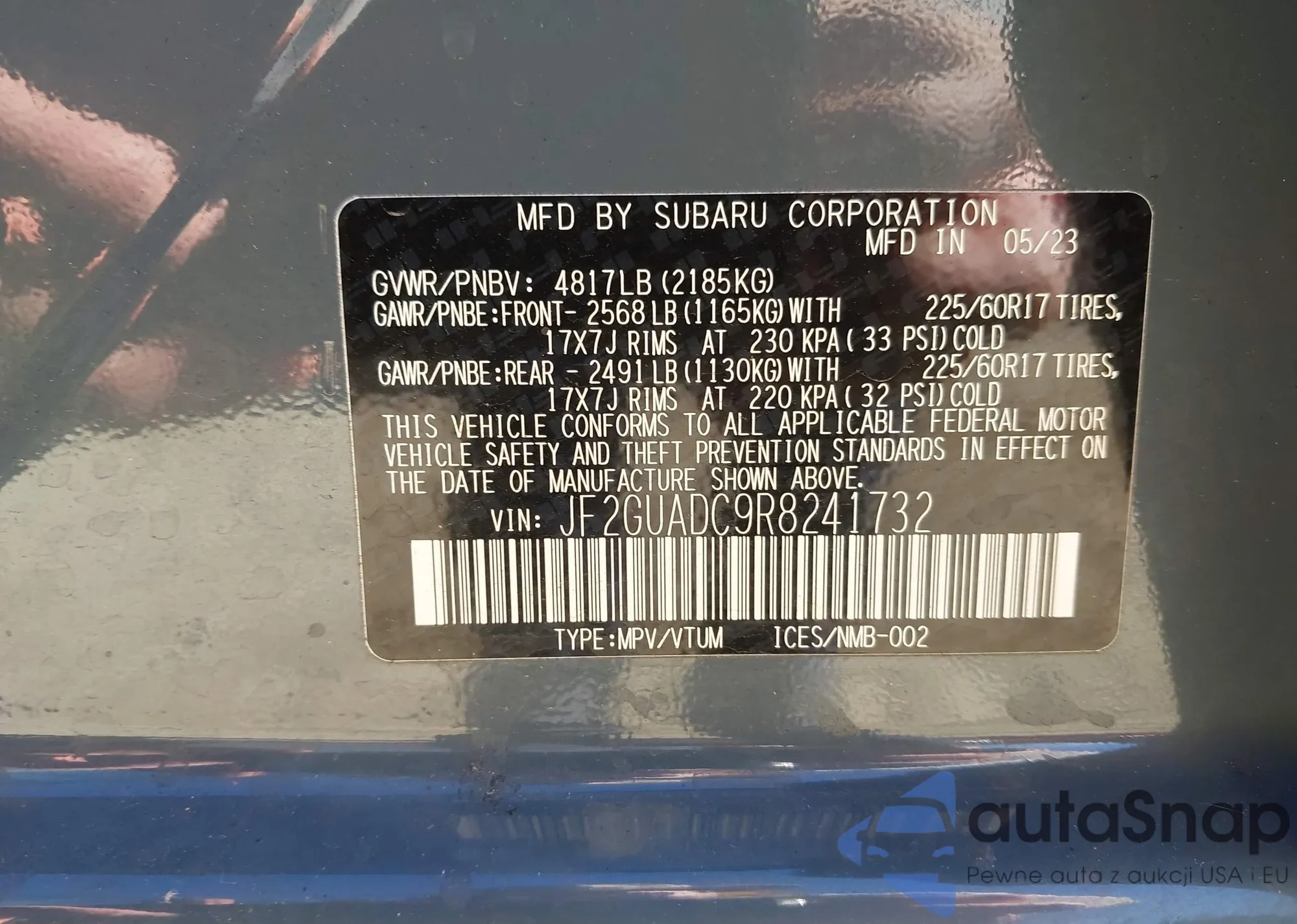 • VIN JF2GUADC9R8241732