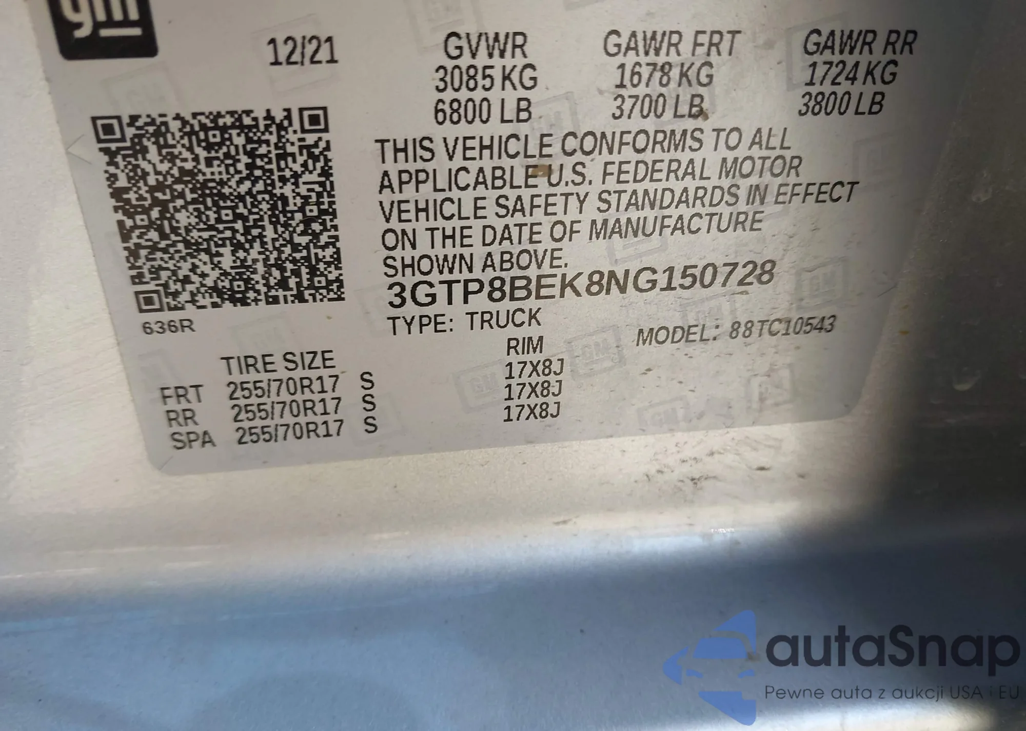 LOT: 43599746 VIN: 3GTP8BEK8NG150728