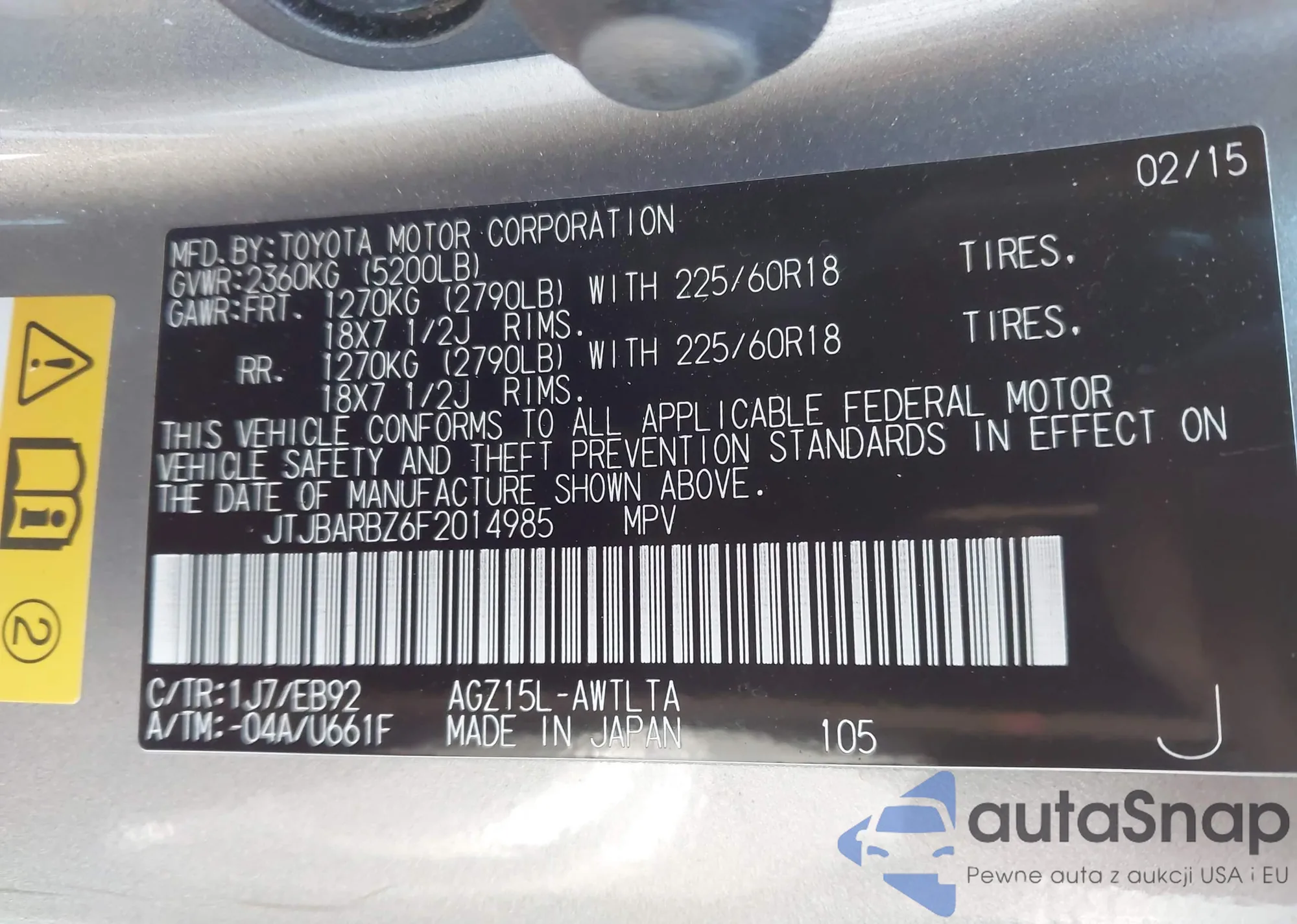LOT: 43673427 VIN: JTJBARBZ6F2014985