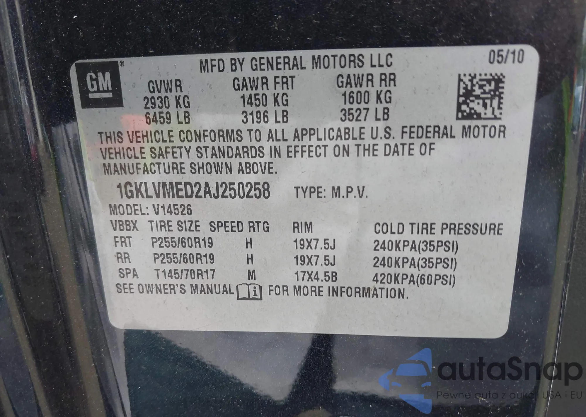 LOT: 43606081 VIN: 5FNYF3H8XAB023446