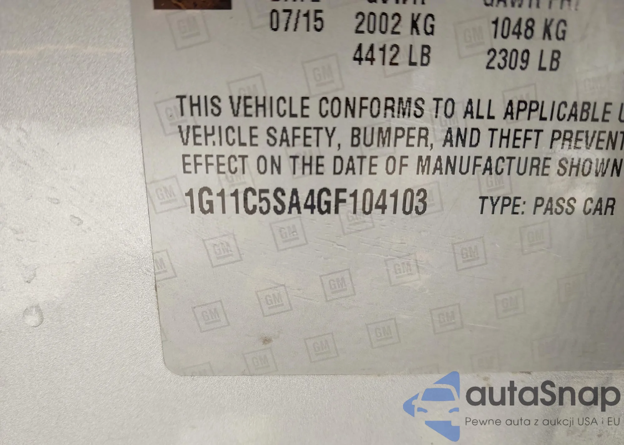 LOT: 43181134 VIN: 1G11C5SA4GF104103
