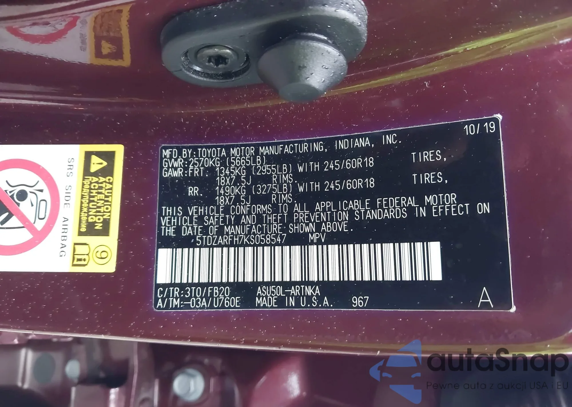 LOT: 43570525 VIN: 5UXWX9C58D0D01351