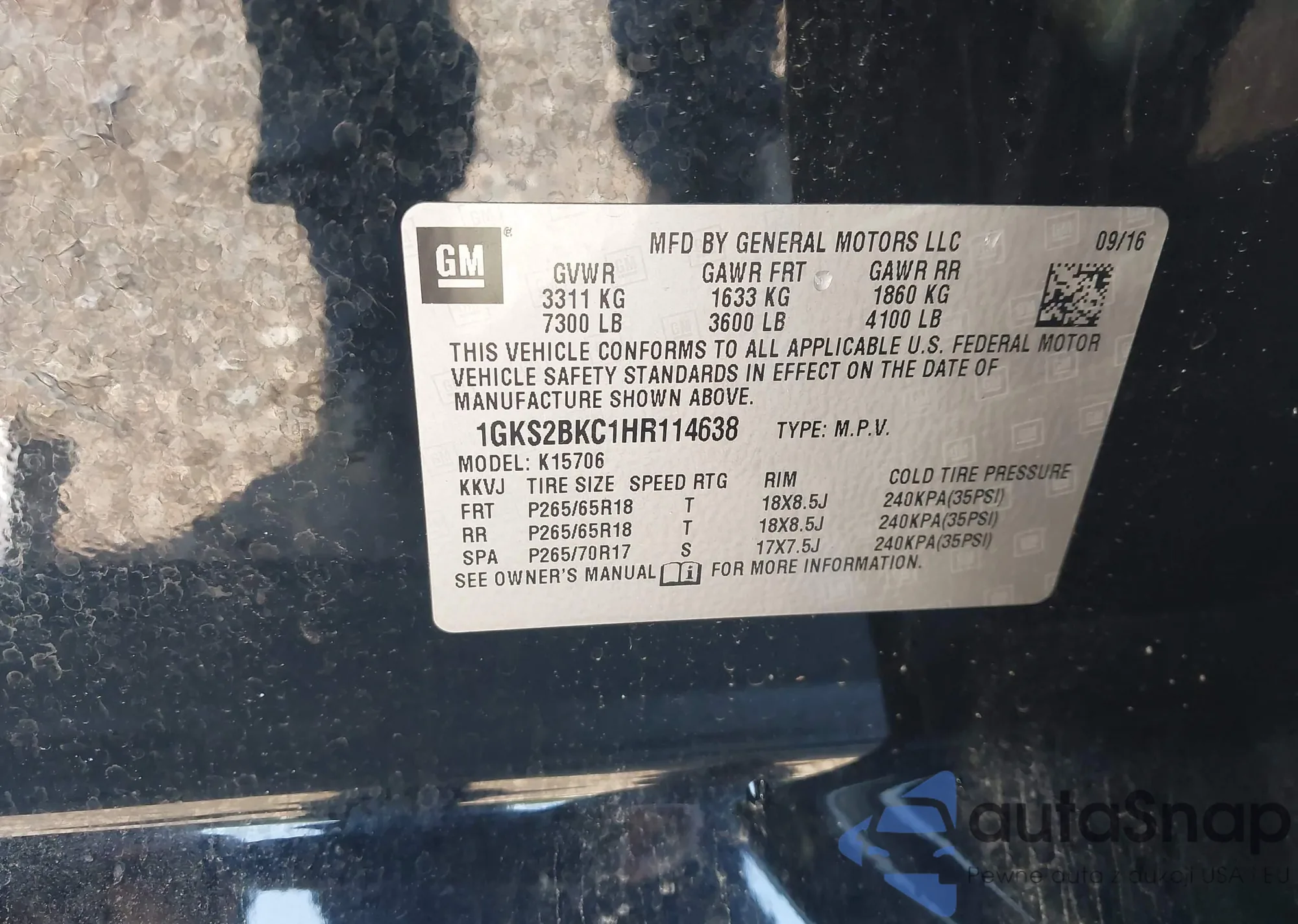 LOT: 42863114 VIN: 1GKS2BKC1HR114638
