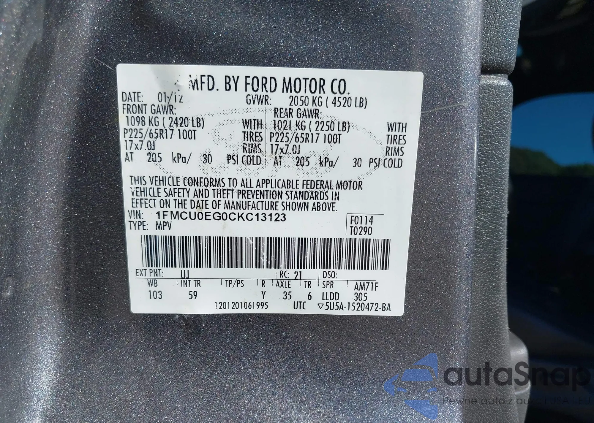 LOT: 43168573 VIN: 1FMCU0DZ4MUA21096