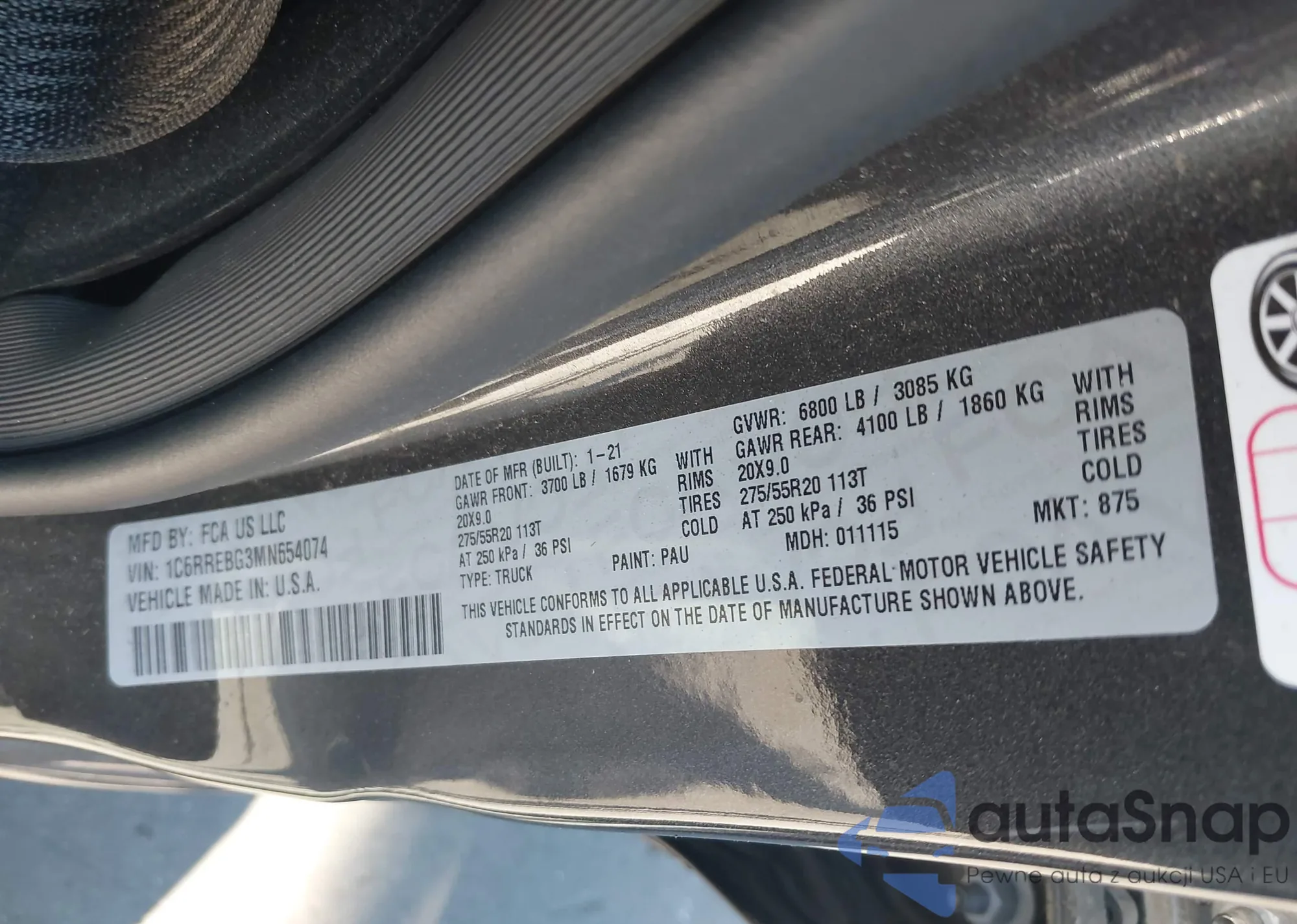 • VIN 1C6RREBG3MN654074