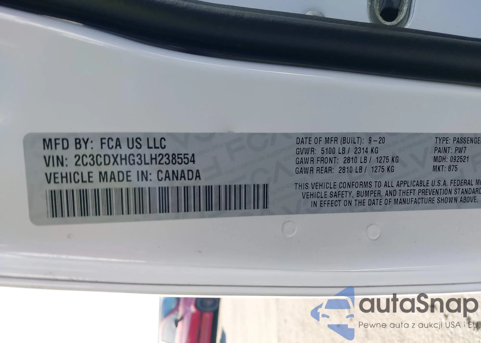• VIN 2C3CDXHG3LH238554