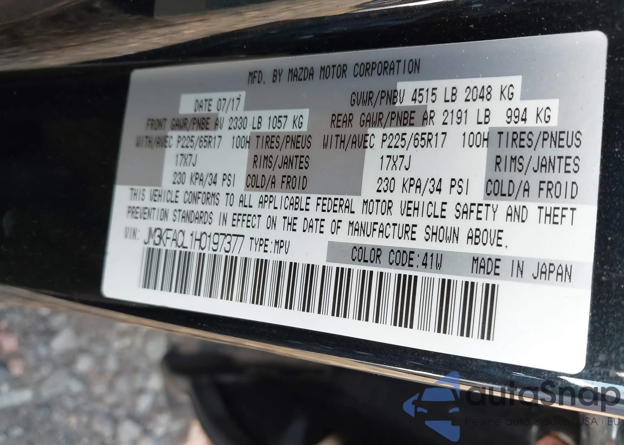 • VIN JM3KFACL1H0197377