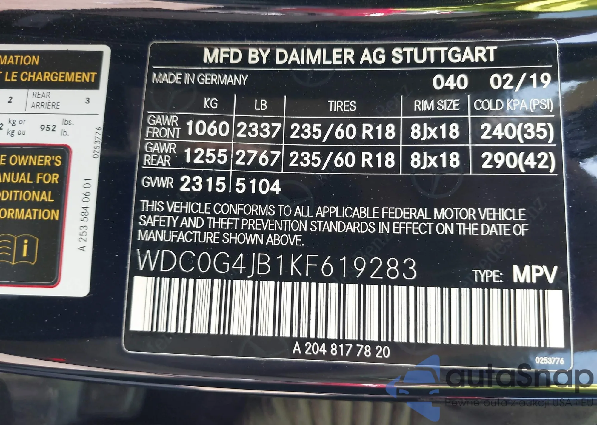 • VIN WDC0G4JB1KF619283