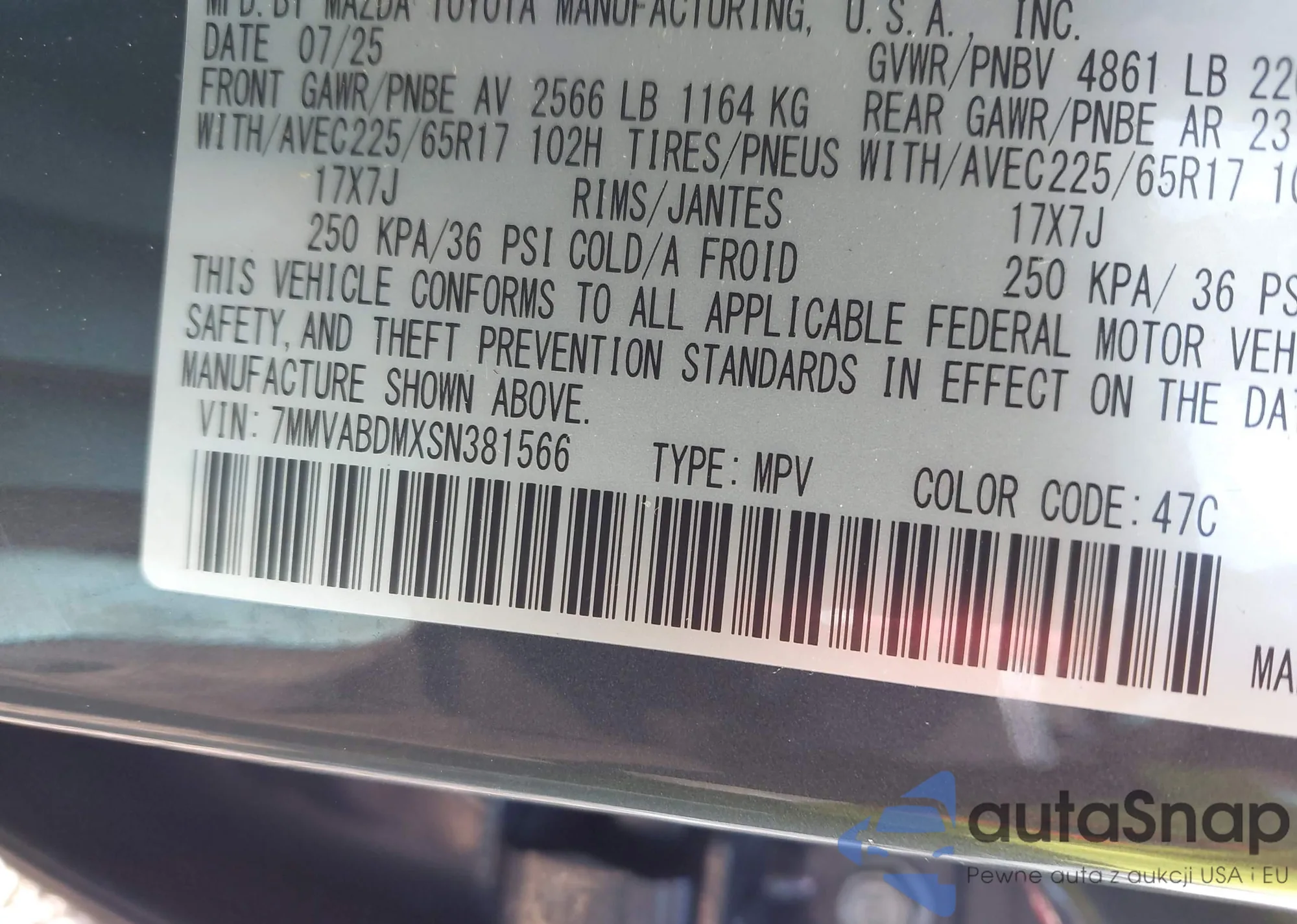 • VIN 5YFEPMAE5MP259887