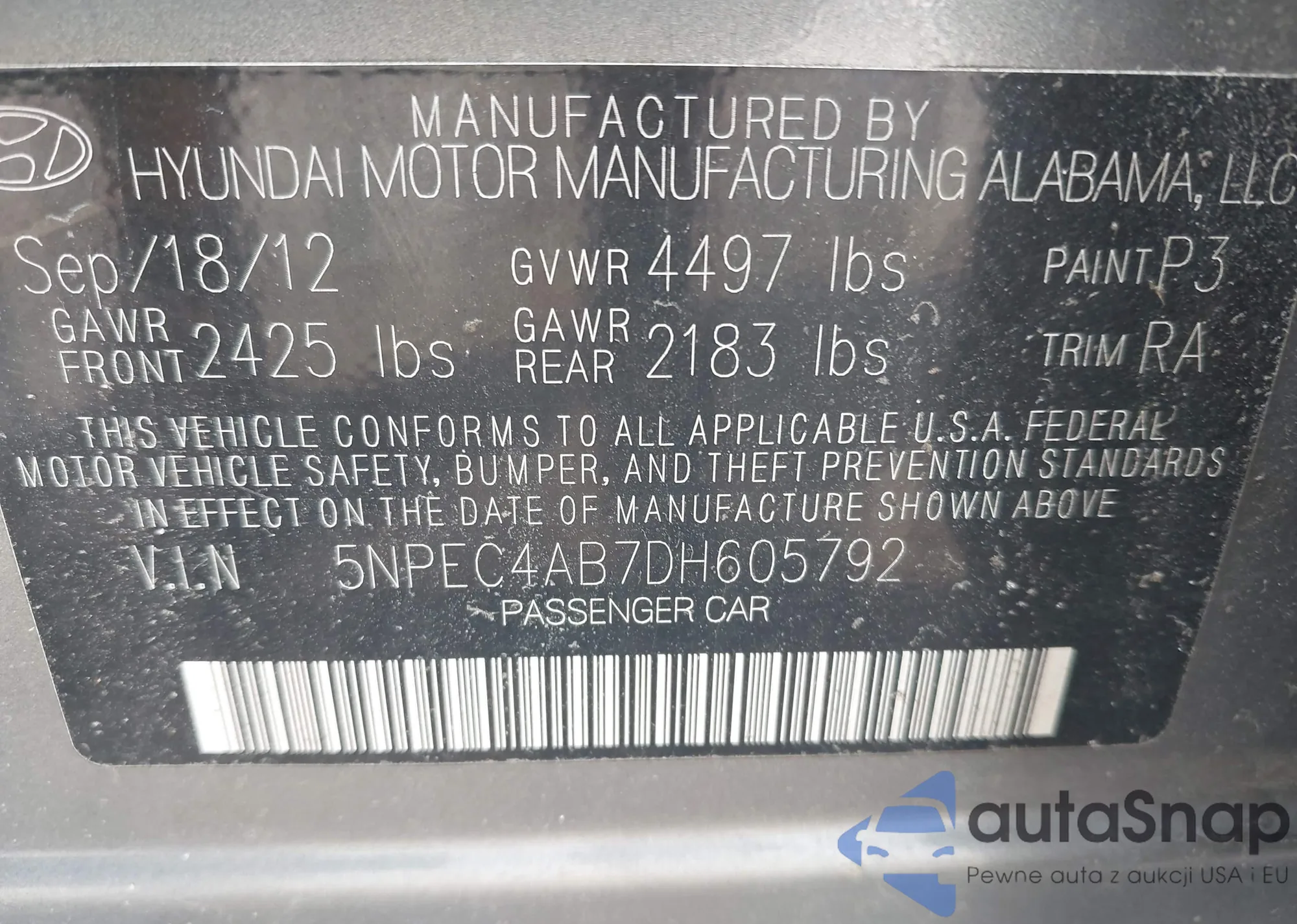 LOT: 43475069 VIN: 5NPEB4AC3DH514675
