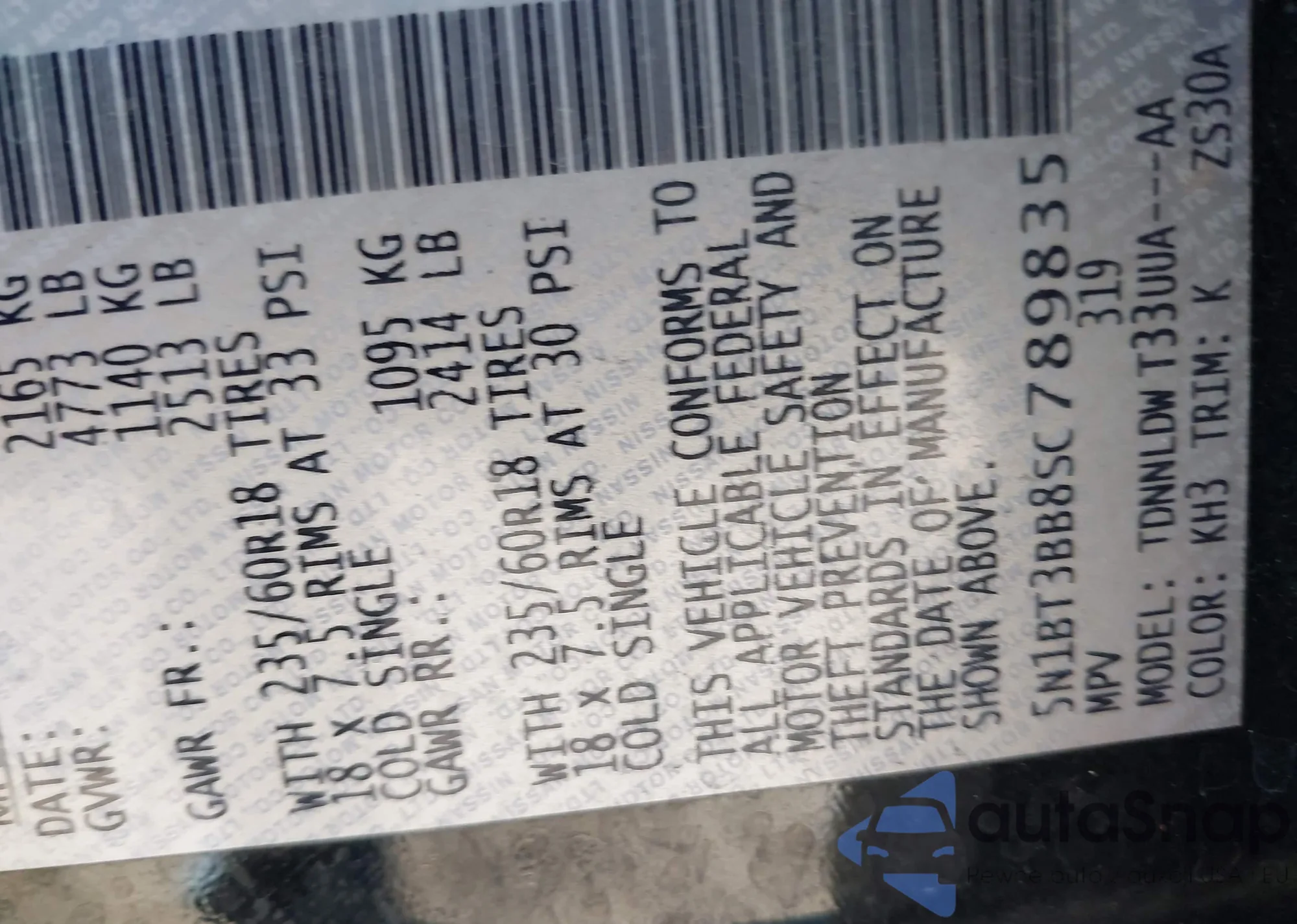 • VIN 2C3CDXCT7KH652875
