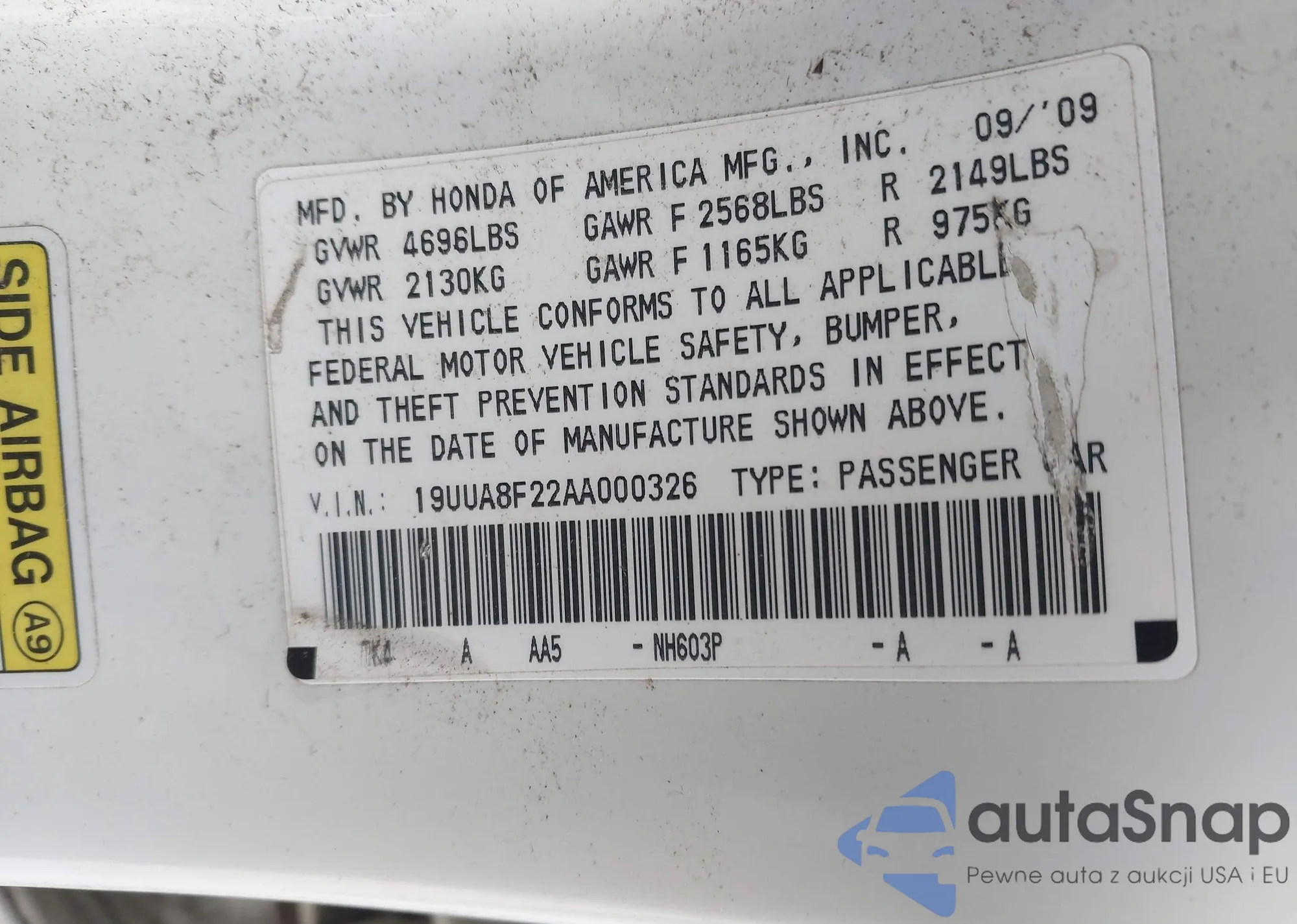 • VIN 19UUA8F22AA000326