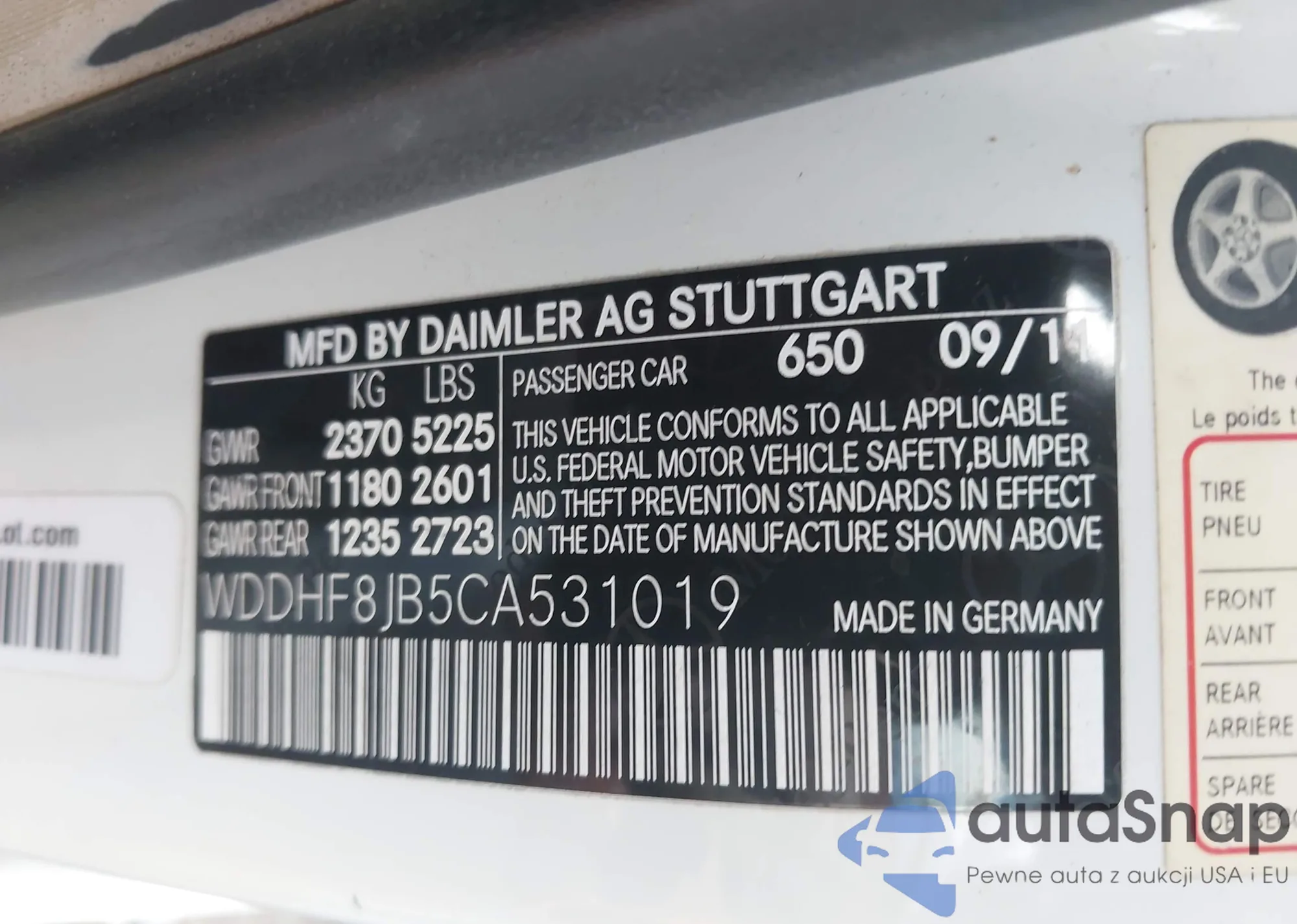 LOT: 43672527 VIN: WDDHF8JB5CA531019